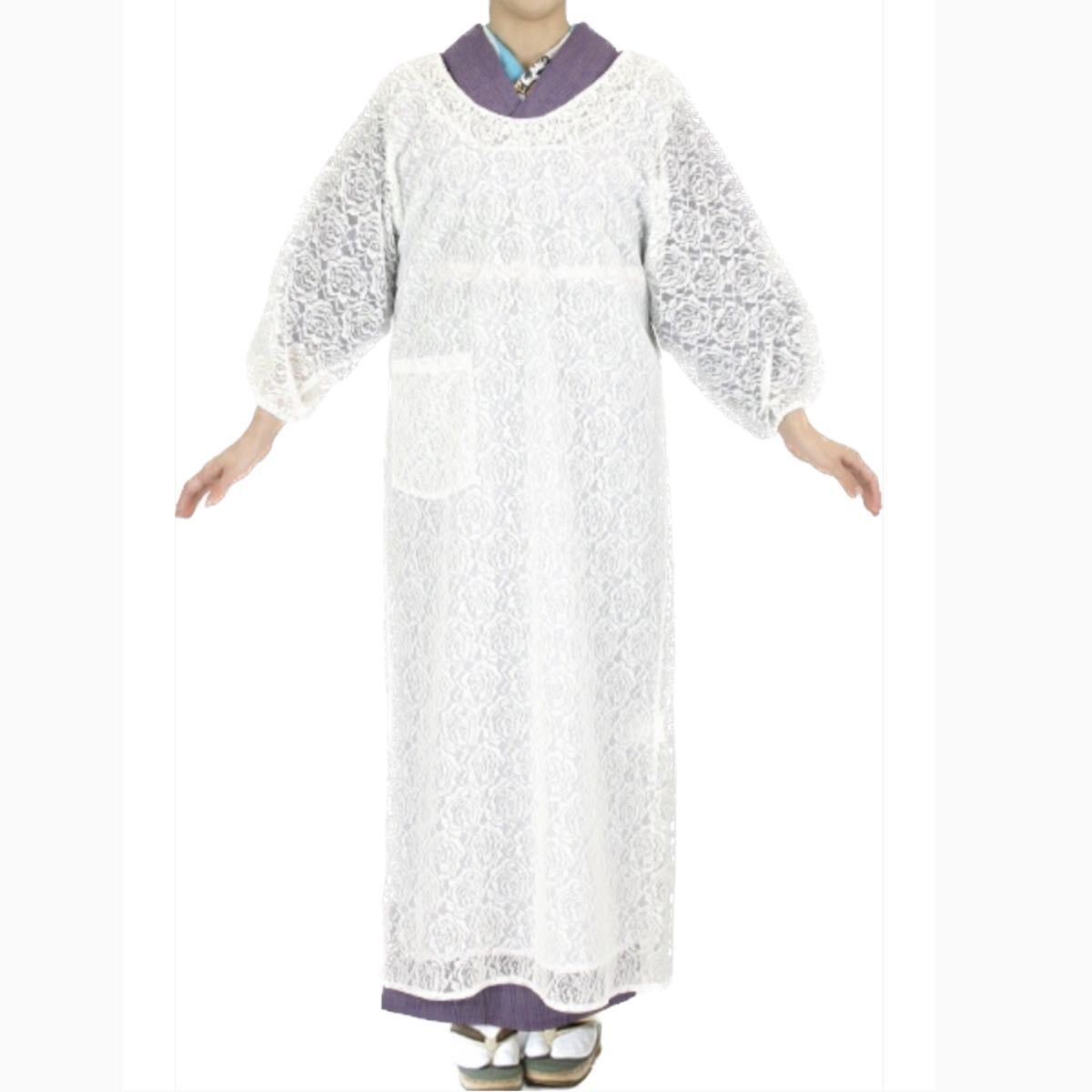 和装用 割烹着 ロング丈 着物用割烹着 着物用 割烹着 和装用 和装割烹着 女性用 女用 エプロン お茶席 120 ロング 120cm 白 レース 夏用