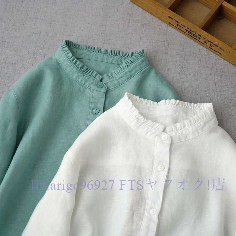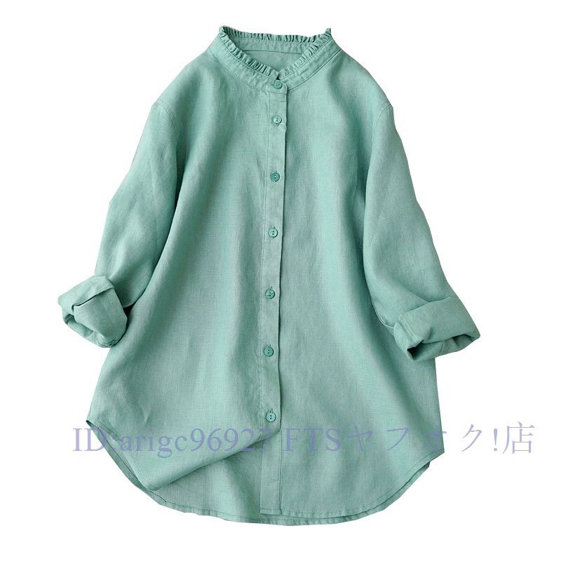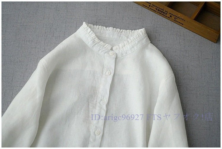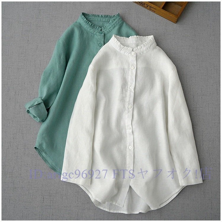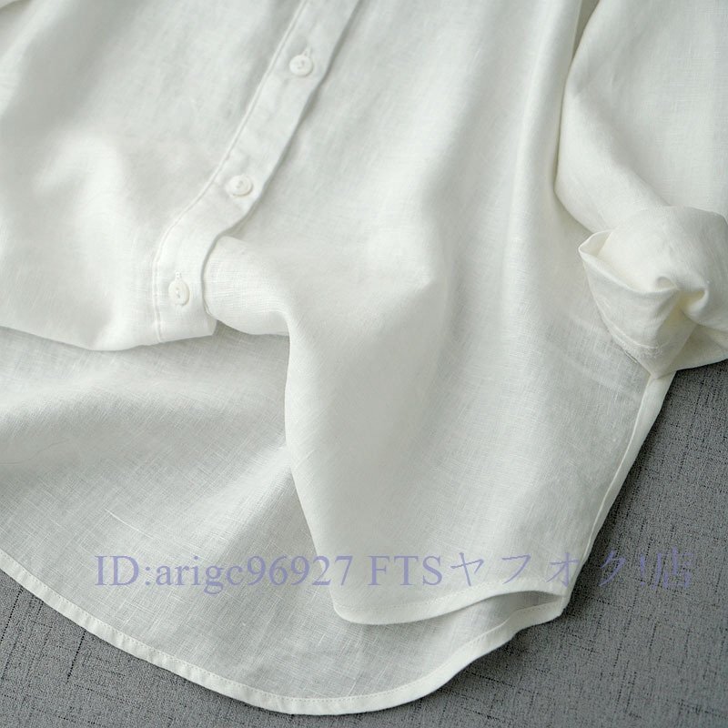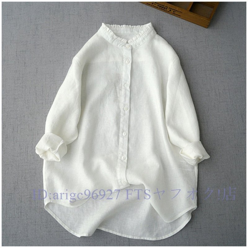 新品★白シャツ森ガール 無地 ブラウス チュニック ブラウス リネンシャツ レディース ゆったり 通勤 着心地 九分 袖丈 トップスお色選択可
