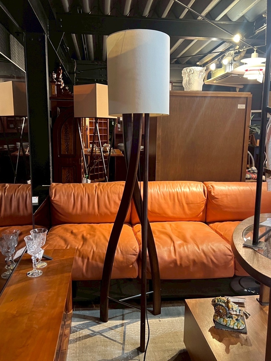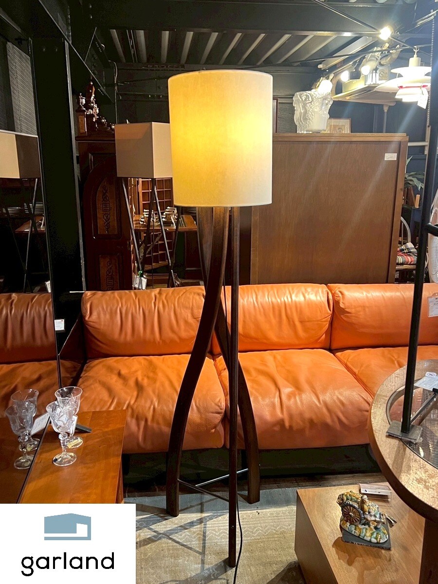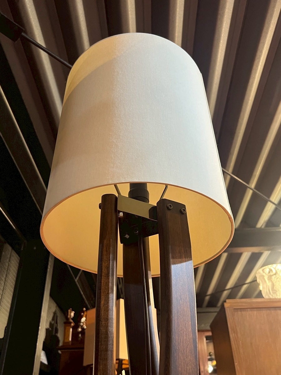 美しい曲木フレームと直線的なシェードが絶妙なバランスを生み出す、彫刻のような佇まいのスタンド照明。