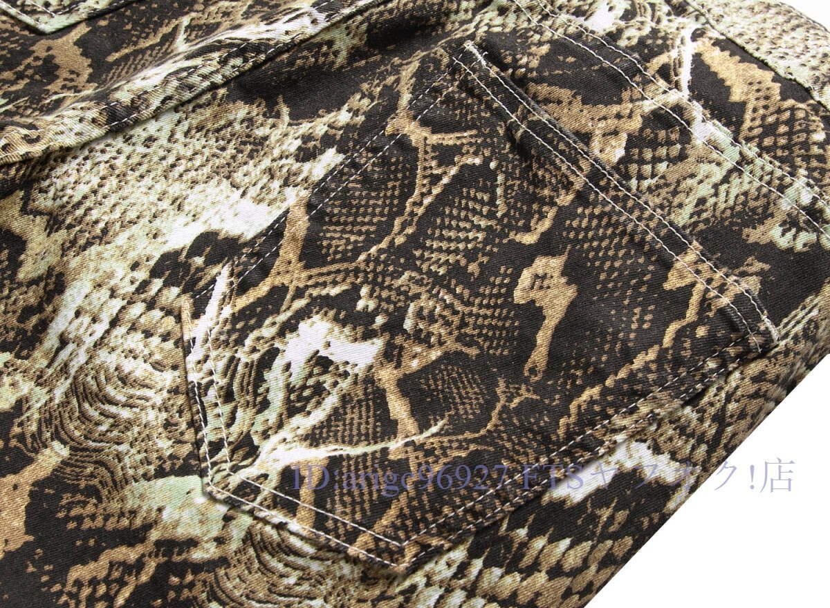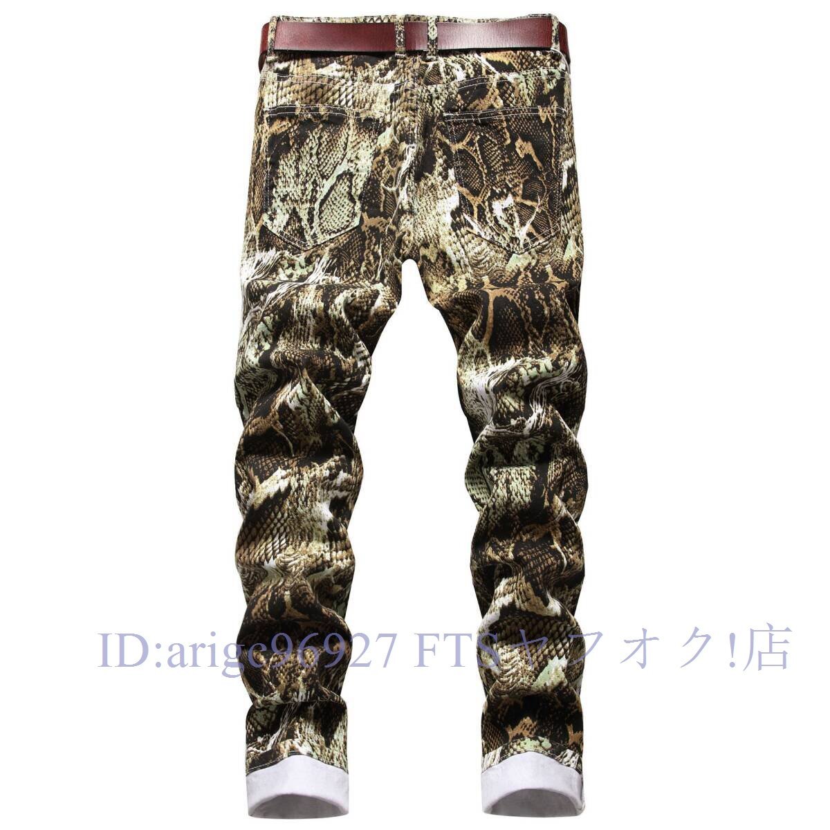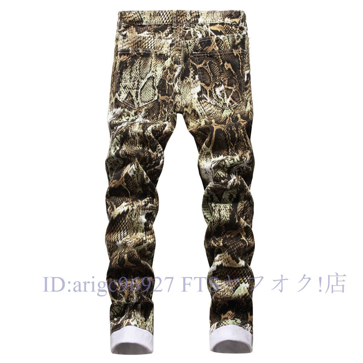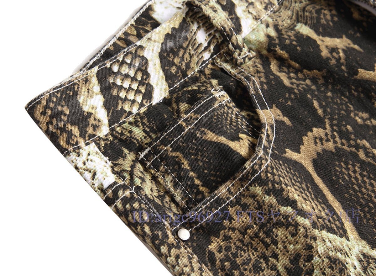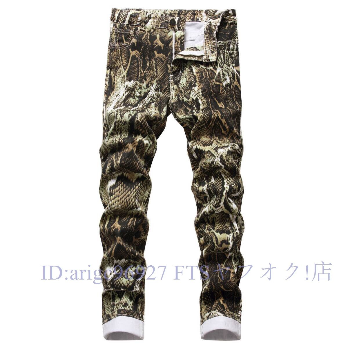 新品★メンズ ボトムス パンツ デニムズボン スネークプリント ヘビ柄 スリム カジュアル 個性的33