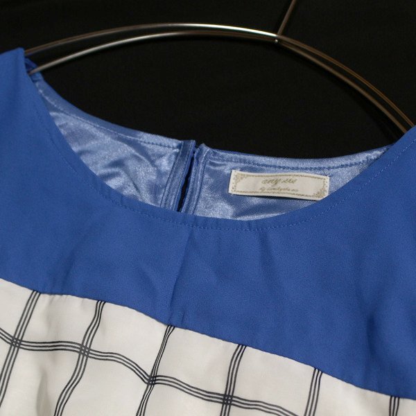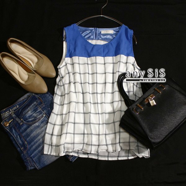 美品 any SiS エニィシィス 可愛い バイカラー 格子柄 シフォン カットソー 2号 M 春 夏 25C06
