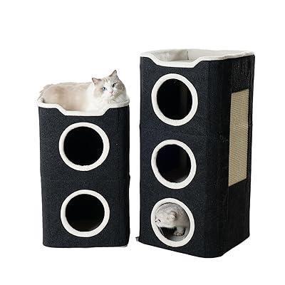 ●【安定した頑丈なデザイン】バランスが良く、大きな猫ちゃんでも安定性が抜群。下の台座がしっかりと上部の重さと猫ちゃんの重さを支えているので、揺れにくく安心して使用できます。