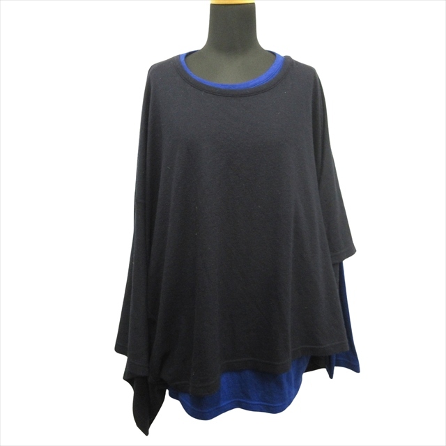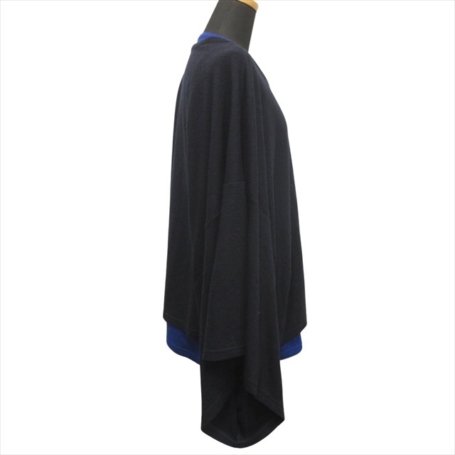 17aw ワイズ Y's ヨウジヤマモト YOHJI YAMAMOTO アシンメトリー レイヤード ニット カットソー ポンチョ セーター 2 ネイビー レディース