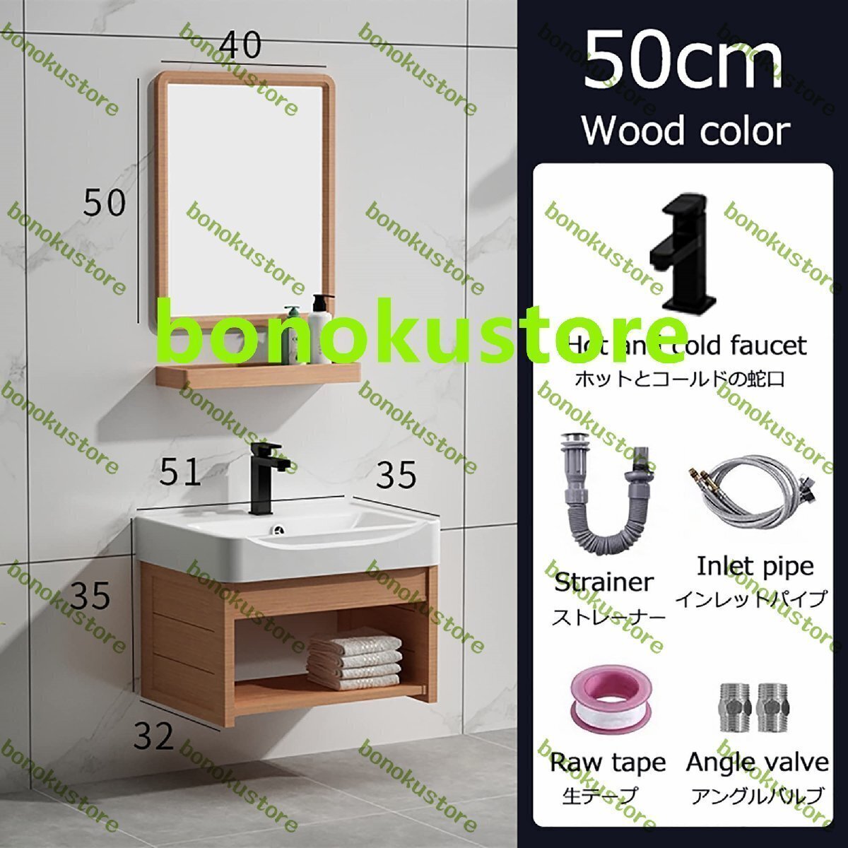 洗面台 洗面ボール 陶器製 洗面シンク 洗面化粧台 キャビネット シンク コンボ 小さなスペース用 バスルーム シンク キャビネット バスルーム シンク 洗面台 鏡付き 壁掛け バスルーム 洗面化粧台 シンク セット フローティング化粧台 バスルーム アンダーマウントセラミックシンク (色 : Wood color Size : 50x35x35cm)