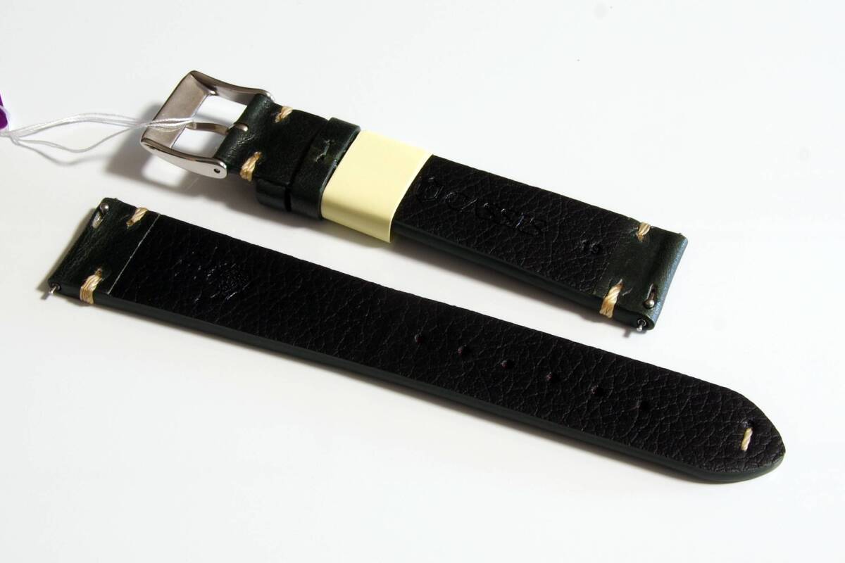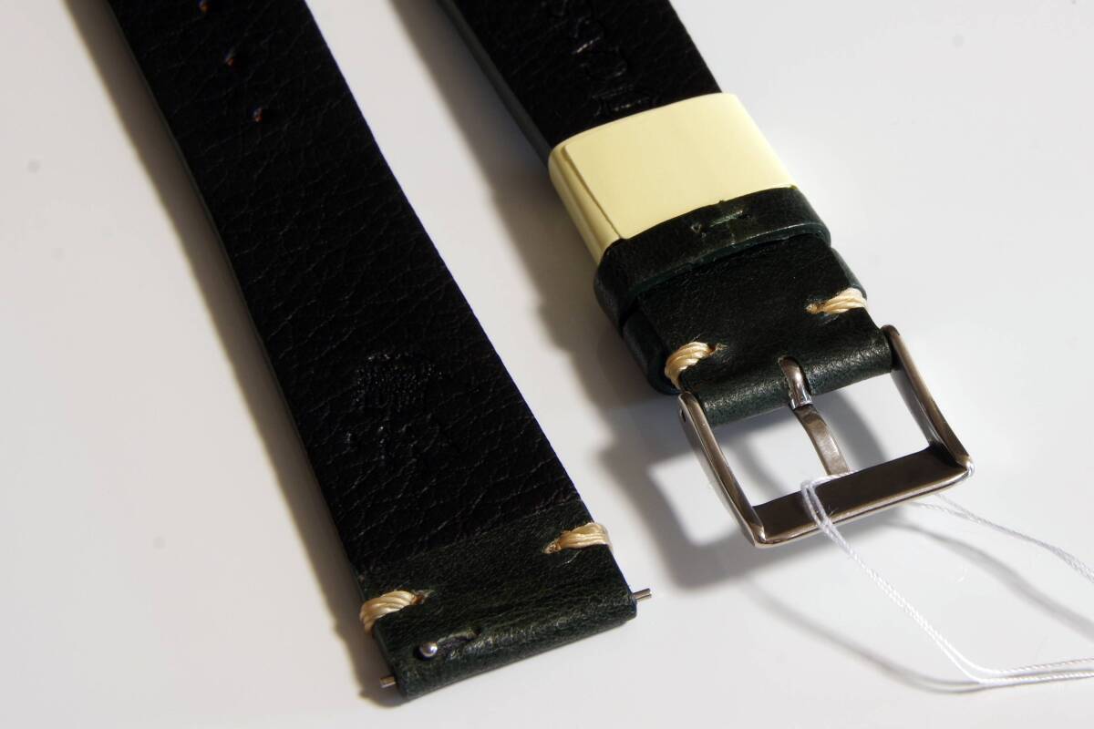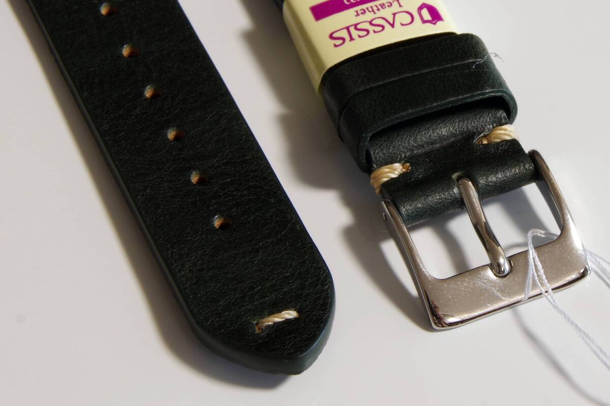 ヴィンテージ感のあるカーフを使用したモデル。 色むら・革傷等がよりビンテージ感を醸し出しています。 付け根にかがり縫いと剣先のステッチがアクセントになっています。 裏材には水・汗に強い合成皮革「LORICA(ロリカ)」を使用しております。 商品の詳細 商品名CASSIS GRENOBLE(グルノーブル)19mm Dark Green(071) 希望小売価格\5,500 材質カーフ皮革 金色/ステンレス尾錠(ご希望色にて) サイズ ラグ幅 19mm 尾錠幅 16mm 長さは剣先側 115mm 尾錠側 75mm(尾錠含まず) 厚み約3mm カシスDバックル装着は可能です。 重量9g 発送の詳細 送料は当方で負担いたします。 匿名配送のネコポスでお送りいたします。 |