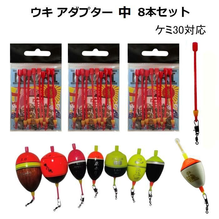 ウキ アダプター 中 8本セット 円錐ウキ 昼夜 中通しウキ カン付ウキ 仕掛け 釣り 釣具
