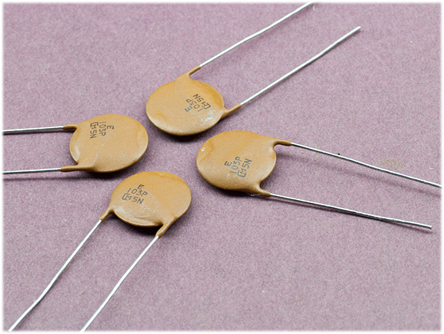 ジャンク箱からシリーズ 円板型セラミックコンデンサ0.01uF500V 4個です。 真空管機器のパスコンなどに多用されています。 ジャンク箱に眠らせた部品です。円板の大きさは12㎜くらい、リード長25㎜です。