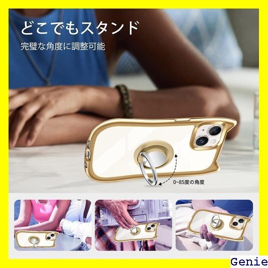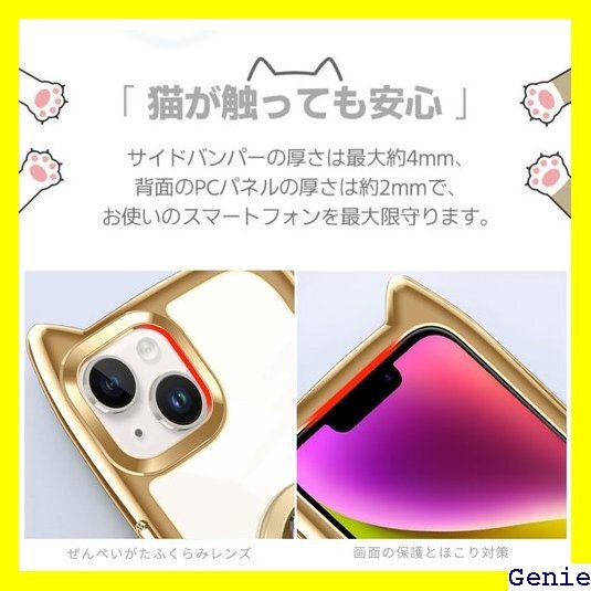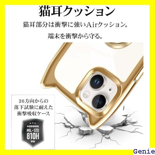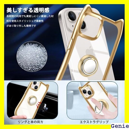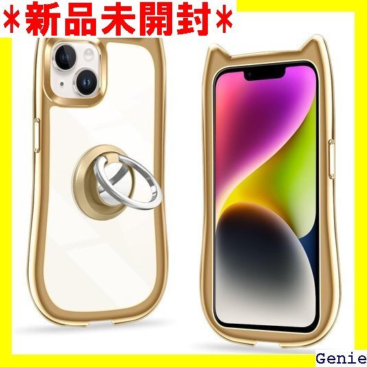 iPhone 13/14 ケース クリア カバー TPU 猫耳 リング付き リングホルダ かわいい おしゃれ スタンド付き ストラップホール アイフォン13/14 スマホケース 多機能 全面保護 落下防止 ゴールド 152