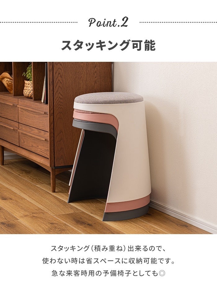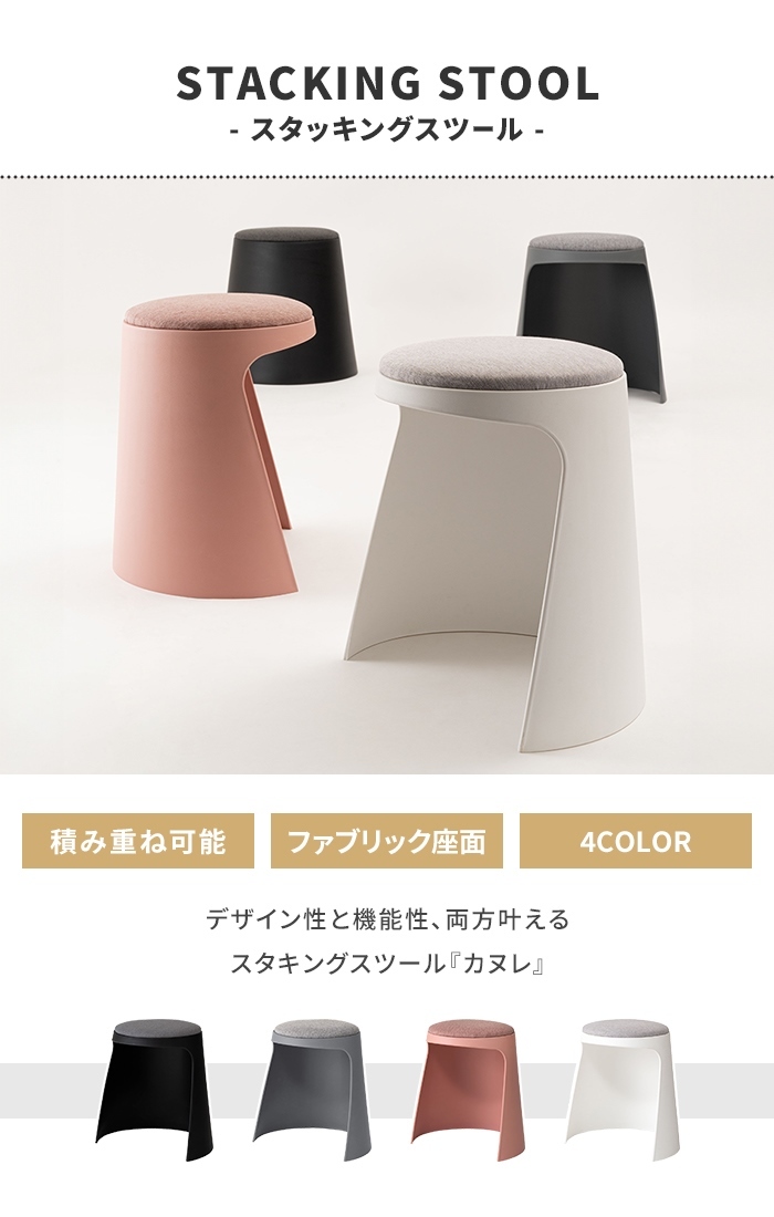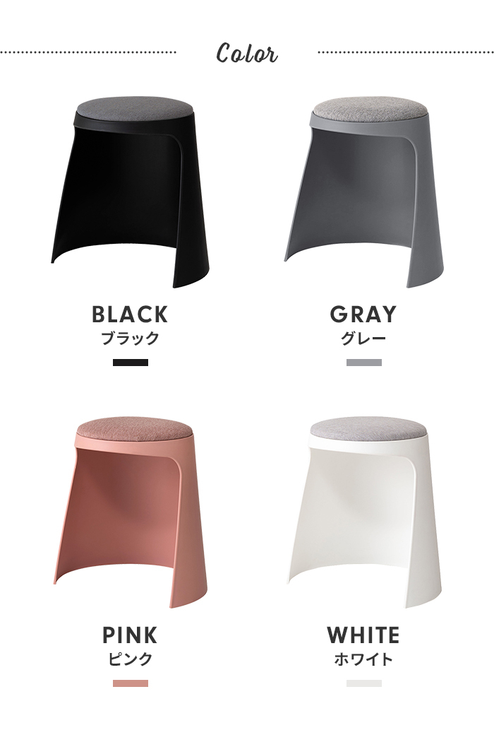 | スツール おしゃれ チェア チェアー 椅子 イス 背もたれなし アームレス 肘なし 円形 丸型 完成品 スタッキング 積み重ね コンパクト プラスチック ファブリック シンプル モダン 個性的 かわいい デザイン ブラック 黒 グレー 灰 ピンク 桃 ホワイト 白 座りやすい 幅42 奥行34.5 高さ44cm 省スペース 簡易 |