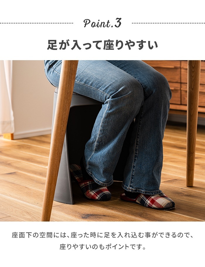 | デザイン性と機能性、両方叶えるスタッキングスツール「カヌレ」 座面下に大きく空いた空間は、個性的なフォルムのデザイン性を高めるだけでなく、足を入れられる事で座りやすくなる機能性も兼ね備えています。 座面にはファブリックを使用し、その座りやすさをより追求しました。 |