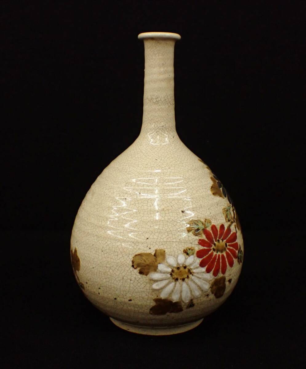 ▲乾山銘 金彩色絵菊絵鶴首徳利▲一輪挿し/花器/高さ約28.5cm/消費税0円