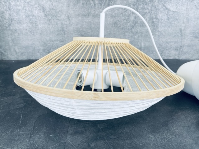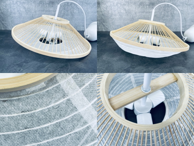 メーカー不明 ラタン 3灯 ペンダントライト 【中古】動作保証 照明器具 和モダン 和風 和紙/513283