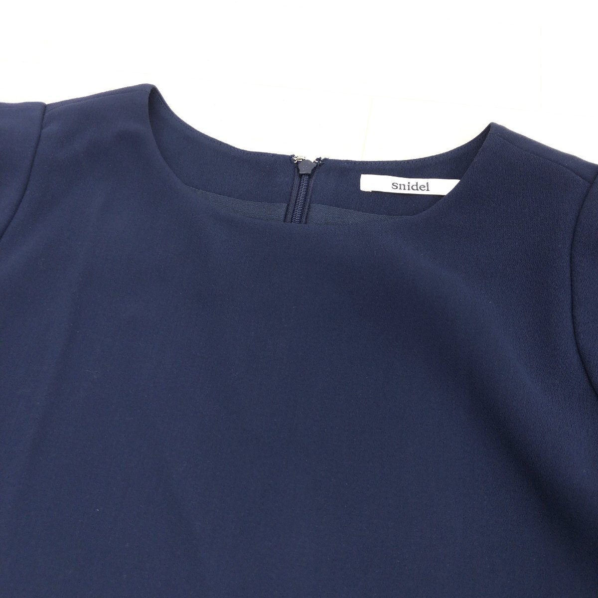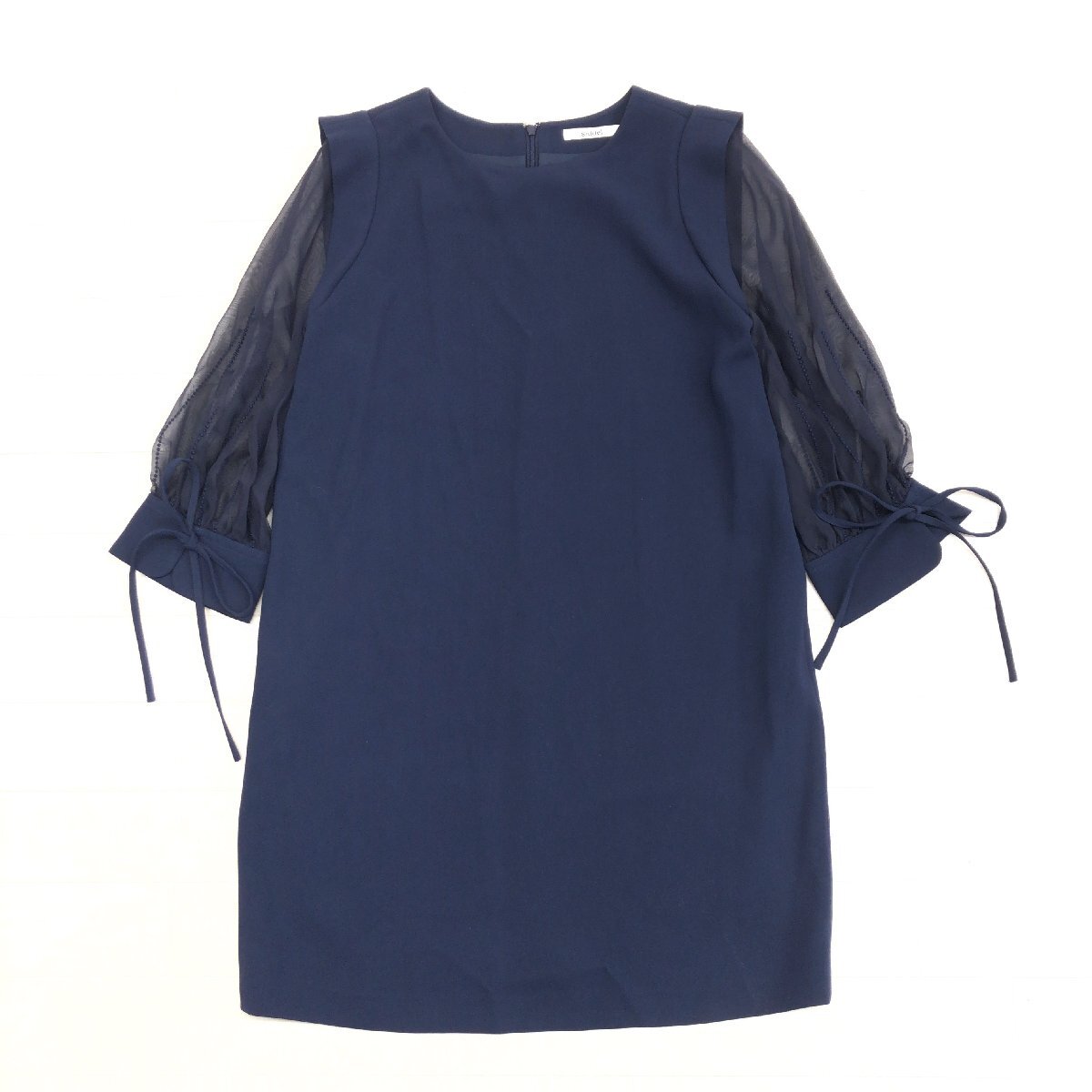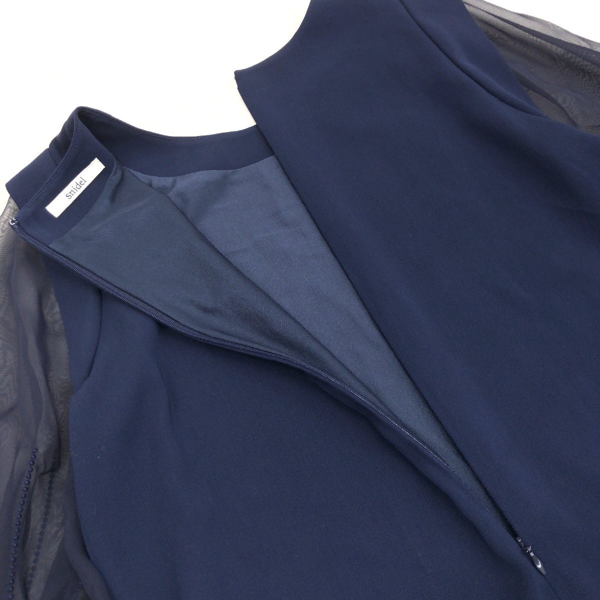 美品 SNIDEL スナイデル シアースリーブ ドッキング ドレス ワンピース F 濃紺 ネイビー チュニック シースルー 七分袖 レディース 女性用