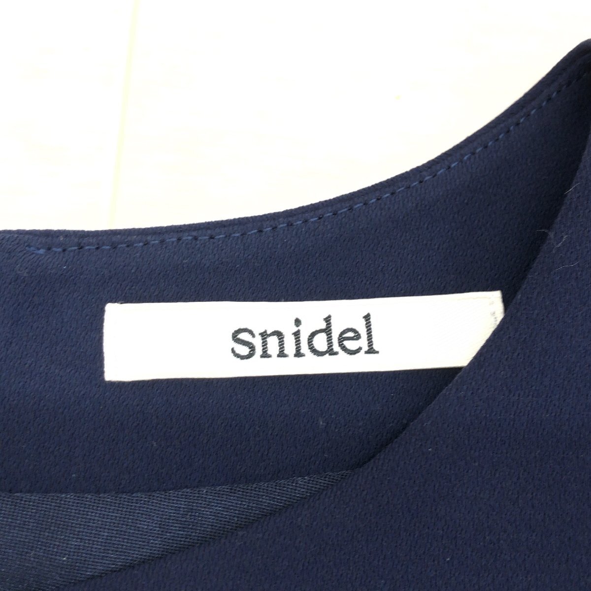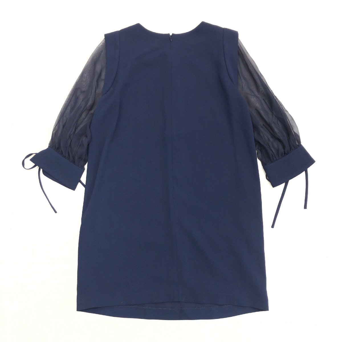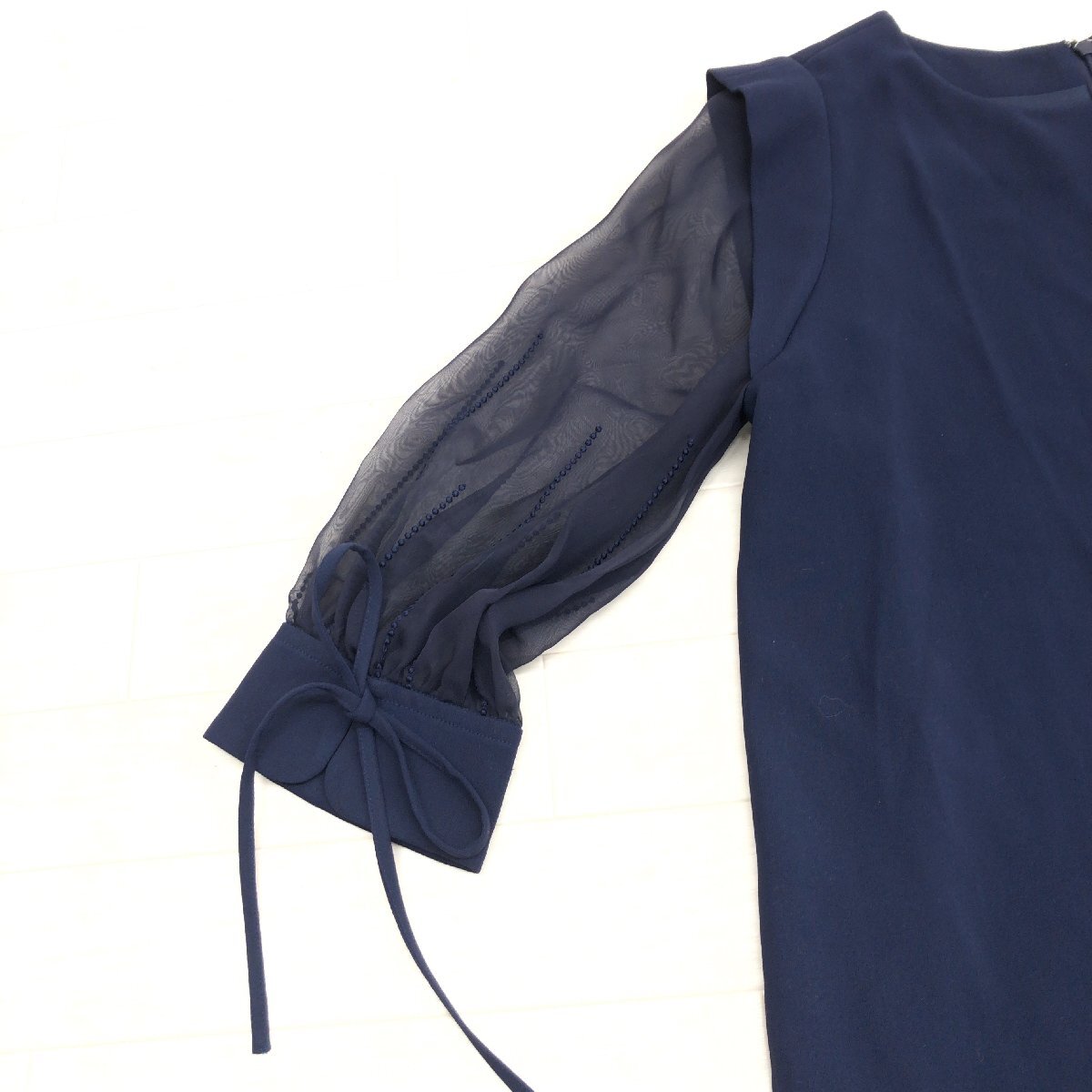美品 SNIDEL スナイデル シアースリーブ ドッキング ドレス ワンピース F 濃紺 ネイビー チュニック シースルー 七分袖 レディース 女性用