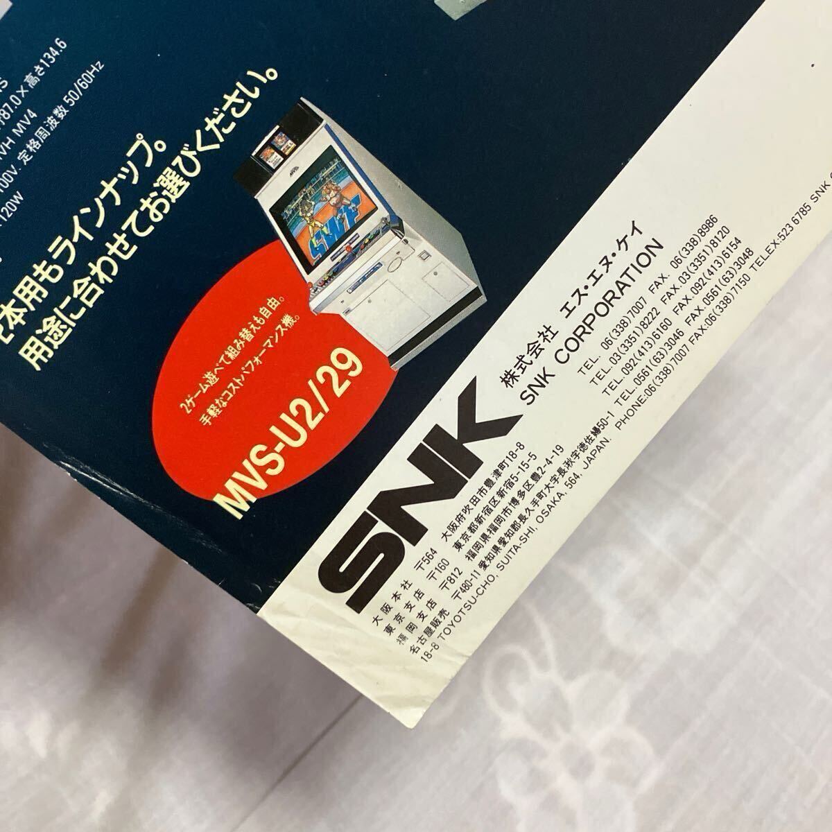 MVS U4 29 NEOGEO 筐体ネオジオ SNK MVS筐体 チラシ カタログ アーケード フライヤー パンフレット 販促 ゲーム