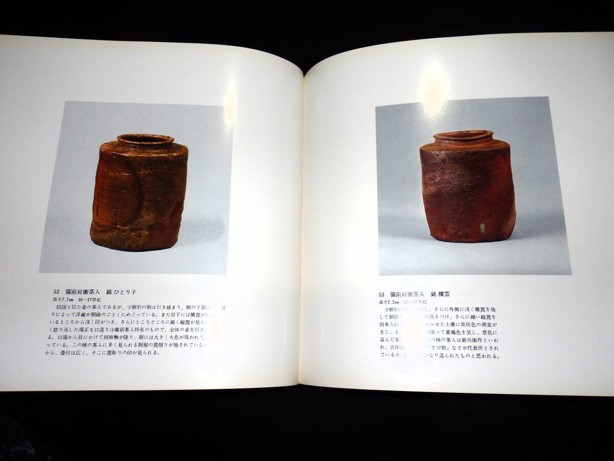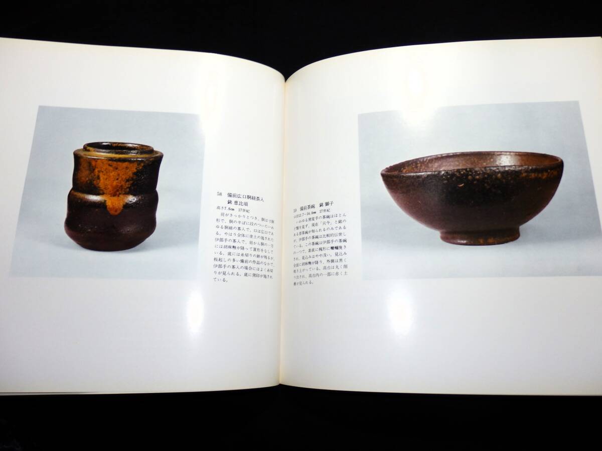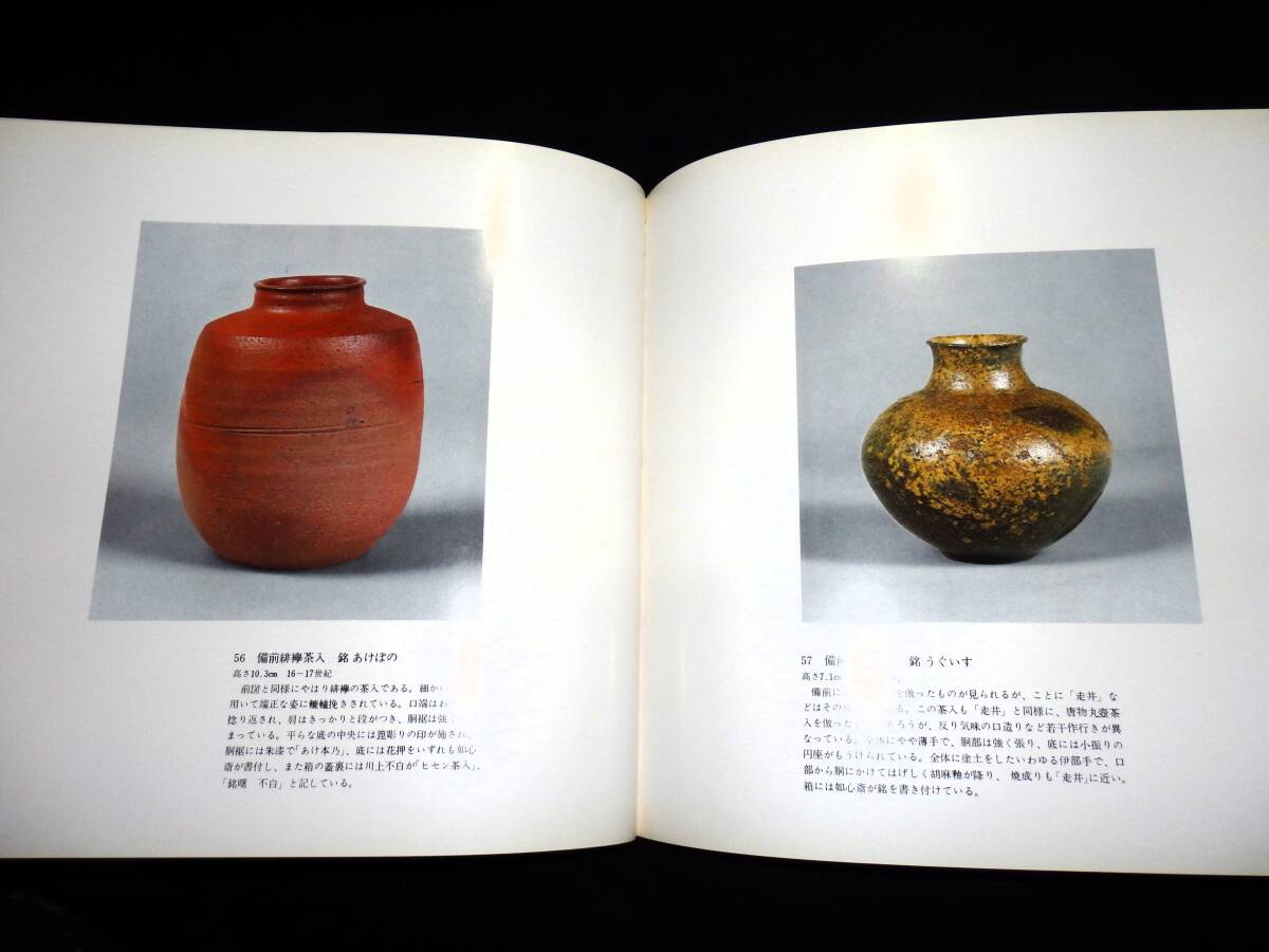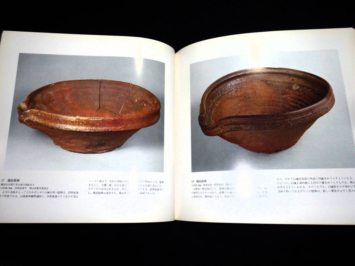 ■■『図録』・・・■■ ●●『備前の名陶』・・・●● ―“その源流から現代まで”― ◆山陽放送・株式会社・1983。 ★一千年の歴史と伝統を持ち・いまや禅同様世界的に有 名になった備前焼の一大展覧会が地元岡山を初め・東 京・大阪において開催されることになり・備前焼作家 の一人としてこんなうれしいことはない。 元来・うわぐすりをかけた焼物や磁器と違って・備前 焼の持つ美しさは・相当の知識人が深い興味をもった 人にしか理解されたいものとされていたが・今日・日 本はもとより欧米各国でも備前焼の持つ幽玄の美・あ るいは単純・明解・豪放という基本理念は世界各地で 高く評価され・いまや備前は益子と並んで世界のメッ カとなっている。 花を活ければ花を・果物や料理を盛ればその果物や料 理を・自分を殺してひたむきに美しく引き立てようと する献身の美こそ・備前焼の持つ素晴らしい特性であ り・それだけになかなか真の美しさは誰にも容易に理 解されるものではない。 しかし・いったん備前焼の魅力にとりつかれると・生 涯備前焼なくして生きていけないほど魔力を持った焼 物といわれている。 そうした備前焼を・今回その始まりから今日に至るま での全貌を見ていただいて・備前焼一千年の歴史の持 つ意味と・その激しい美しさをじっくり鑑賞していた だきたいものと私は願っています。 ■会期=昭和58年5月5日~17日。 ■会場=岡山高島屋。 ■主催=山陽放送。 ■後援=文化庁/岡山県/岡山市/備前市/岡山県・岡 山市・備前市・各教育委員会/岡山県郷土文化 財団/日本国有鉄道岡山鉄道管理局/岡山新聞 社。 ■監修=今泉篤男/林屋晴三/真壁忠彦。 ■運営委員=河内山重高/藤原啓/飯田新一。 ■発行=山陽放送・株式会社・1983。 ■制作=日本アートセンター。 ■印刷=奥村印刷株式会社。 ■定価=記載なし。 ■サイズ=24×25cm。 ■状態=美品。 ●表紙に多少のキズ・ヤケが有ります。 ●本誌内に多少のヤケが見えますが ●大きなダメージは無く ●年代的には良い状態に思います。 ◆◆注意・・・◆◆ ★発行日より経年を経て下ります。 コンディションに係らず・古書で有る事を 充分に・御理解の上・御入札下さい・・・・!! ●全・176頁・上質光沢紙・・・!! ●図版・149点・全カラ・・・!! ◆個々の大きな図版です。 ◆名称/寸法/年代/作品解説。 ●蒐集・資料などの参考に・・・!! ●探されていた方は・この機会に・・・!! ●以下・詳細をご覧ください・・・!! ◆掲載案内は、抜粋して下ります。 ◆掲載内容は・Q&Aより・問い合わせ下さい。 ◆数字記載は目視です・間違いは御容赦下さい。 ●掲載を抜粋紹介し・「タイトル」・と、致します。 ●●●●●●●●●●●●●●●●●●●●●●●●●●● ◆◆◆◆◆◆◆◆◆◆◆◆◆◆◆◆◆◆◆◆◆◆◆◆◆◆◆ ■■「備前の名陶」・・・■■ ―“その源流から現代まで”― ●●「備前焼展に寄せて」・・・●● **”藤原啓”** ●●「備前の陶器」・・・●● **”今泉敦男”** ●●「図版」・・・●● ●「中世・近世の備前」・・・● ―”鎌倉・室町・桃山・江戸”― ◆1・備前大甕。 ・出土。 ・13世紀。 ・草戸千軒町遺跡調査研究所。 ◆2・備前大甕。 ・出土。 ・14世紀。 ・福山城博物館。 ◆3・備前大甕。 ・15世紀。 ・倉敷考古館。 ◆4・備前大甕。 ・元亀二年(1571)銘。 ・岡山県立博物館。 ◆5・備前両耳甕・(水屋甕)。 ・出土。 ・16世紀。 ・島根県立博物館。 ◆6・備前沈線文壺。 ・13世紀。 ・安養寺。 ◆7・備前沈線文壺。 ・出土。 ・14世紀。 ・勝山町公民館。 ◆8・備前櫛目文壺。 ・出土。 ・14世紀。 ・倉敷市教育委員会。 ◆9・備前波状櫛目文壺。 ・海上り。 ・14世紀末~15世紀初。 ・岡山県立博物館。 ◆10・備前波状櫛目文壺。 ・出土。 ・15世紀。 ・島根県立博物館。 ◆11・備前四耳壺。 ・福(文)安元年(1444)。 ・千光寺。 ◆12・備前蹲壺。 ・海上り。 ・14世紀末~15世紀初。 ・岡山県立博物館。 ◆13・備前蹲壺。 ・出土。 ・15世紀。 ・遍照院。 ◆14・備前注口小壺。 ・出土。 ・15世紀。 ・勝山町公民館。 ◆15・備前注口小壺。 ・出土。 ・14世紀末~15世紀初。 ・勝山町公民館。 ◆16・備前擂鉢。 ・海上り。 ・14世紀末~15世紀初。 ・岡山県立博物館。 ◆17・備前擂鉢。 ・出土。 ・15世紀後半。 ・岡山県教育委員会。 ◆18・備前擂鉢。 ・16世紀末~17世紀初。 ・岡山県立博物館。 ◆19・備前透文釣燈籠。 ・寛永8年(1631)。 ◆20・備前透文釣燈籠。 ・元和5年(1619)。 ◆21・備前緋襷波状文壺。 ・16世紀。 ◆22・備前緋襷四耳壺。 ・16~17世紀。 ◆23・備前緋襷四耳壺。 ・16~17世紀。 ◆24・備前三耳茶壺。 ・16~17世紀。 ◆25・備前三耳茶壺。 ・16~17世紀。 ◆26・備前耳付花入・銘・「福耳」。 ・16世紀。 ◆27・備前擂座花生。 ・16世紀。 ◆28・備前三角花生。 ・16世紀。 ◆29・備前四方花生。 ・16世紀。 ・北村美術館。 ◆30・備前旅枕掛花生。 ・16世紀。 ◆31・備前扁壺。 ・16~17世紀。 ◆32・備前管耳広口花生・銘・「客来」。 ・16~