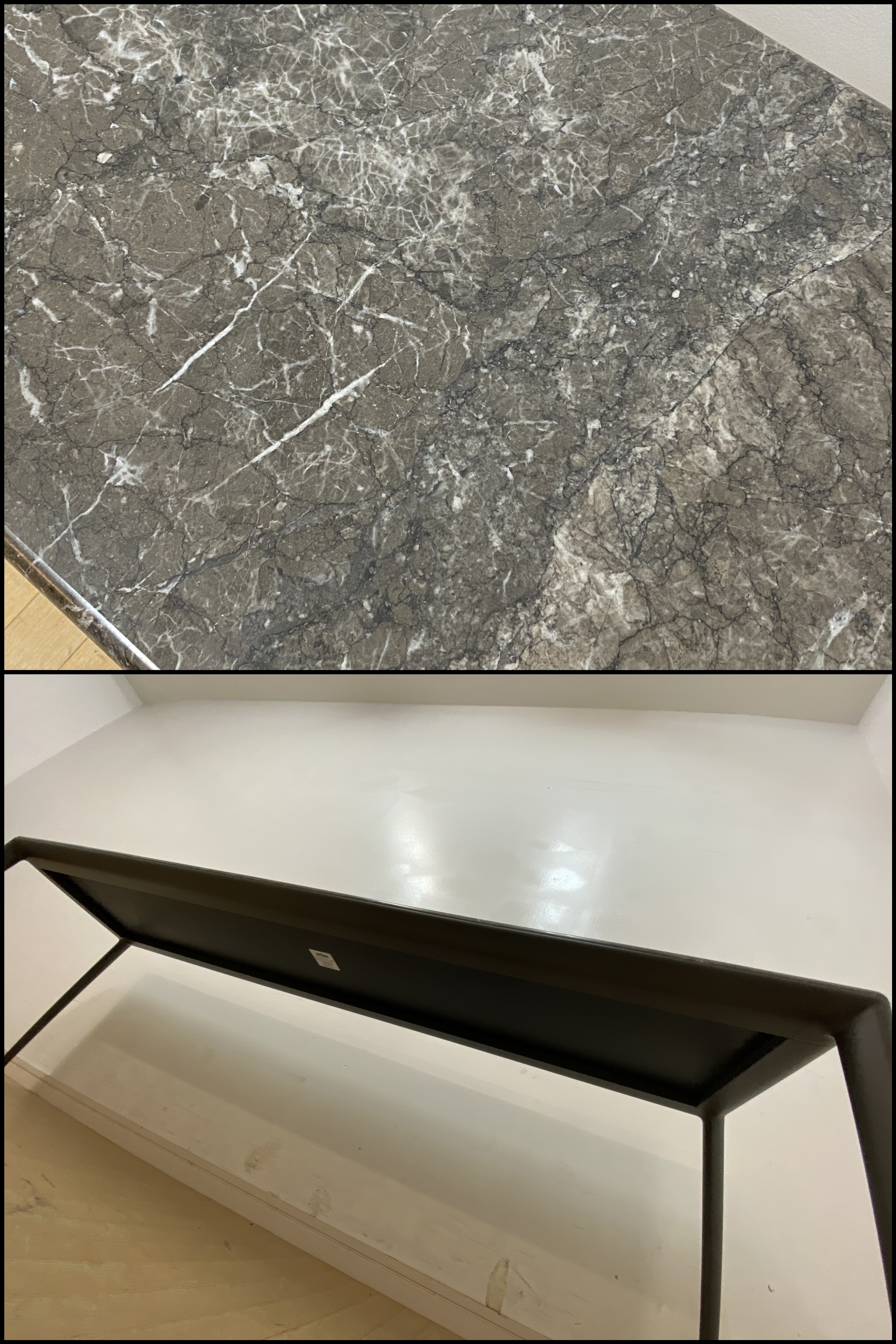 ■メーカー arflex アルフレックス ■シリーズ ERA エラ ■品名 リビングテーブル(センターテーブル) ■型番 ERA-C1603MGY(TGM) ■デザイナー C.O.D. ■材質 天板:大理石(TGM ターキッシュグレー) 脚部:アルミダイキャスト(粉体塗装 MGY メタリックグレー) ■サイズ 約 幅/1560mm × 奥行/350mm × 高さ/485mm ※現行廃版サイズ ■参考価格 約400,000円前後 ■備考 分解不可