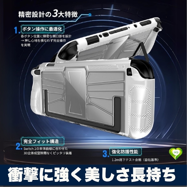 ご覧いただきありがとうございます。 2色展開です。 ご希望の色を事前に お手数ですが「質問する」からご連絡ください。 商品名:Swich2 カバー 【この商品が品質で選ばれる理由】 新型Switch 2専用設計で、大切なゲーム機を傷や汚れから守り、長くきれいに保ちます。 ■こんな悩みありませんか? ・大切なゲーム機を傷や汚れから守りたい ・ゲーム機のデザインを損なわずに保護したい ・友達へのプレゼントで何を選んだらいいか悩む ★こんな時におすすめ! ・新しいゲーム機をすぐに保護したい時 ・ゲーム機のデザインを気分に合わせて変えたい時 ・ゲーム好きの友人への贈り物を選ぶ時 ------------------------------------- 【商品特徴】 ・全方位保護: 落下や傷からSwitch 2を守る高耐久TPUケースです。 衝撃吸収構造で落下時のダメージを軽減し、日常生活での擦れや傷から本体を保護します。 変色や変形しにくい耐久性で、長期間美しい見た目を維持します。 ・精密設計: すべてのボタンとポートに快適にアクセスできます。 Switch 2保護ケースは各ボタンやUSB-Cポートに完全対応しており、操作性を損なわない精密カットが特徴です。 ・防汚・防滑仕様: 清潔さとグリップ性を両立しています。 特殊コーティングで指紋や油汚れを軽減し、水を弾く撥水加工でいつも清潔に保てます。 滑りにくい表面処理で握りやすく、熱くなったゲームシーンでも安定した操作が可能です。 ・人間工学設計: 長時間プレイでも疲れない快適なグリップです。 Switch 2の形状にぴったりフィットする立体成型設計で、手になじむ柔らか素材と適度な厚みにより、長時間のゲームプレイでも手の疲れを軽減します。 隅々までカバーするので、全面保護と快適性を兼ね備えています。 ご不明な点などございましたら お気軽に「質問する」からお問い合わせください。 |