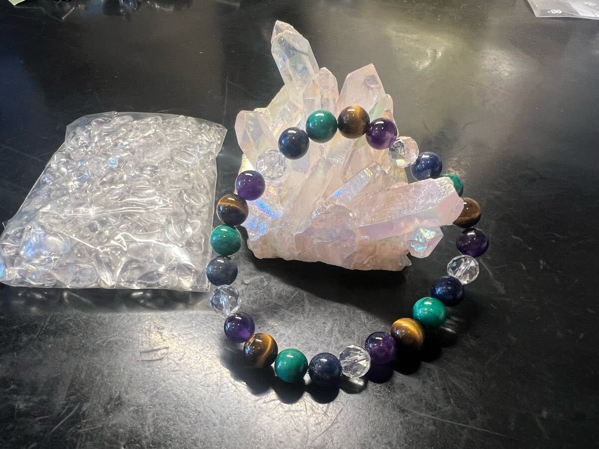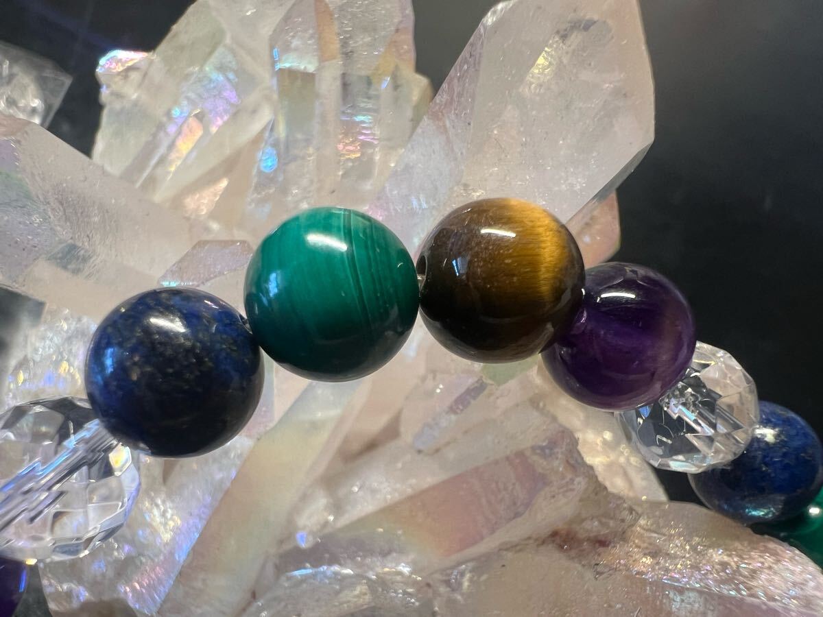 水晶やラピスラズリやタイガーアイなどなどありとあらゆるパワーをブレスレットに詰め込みました!