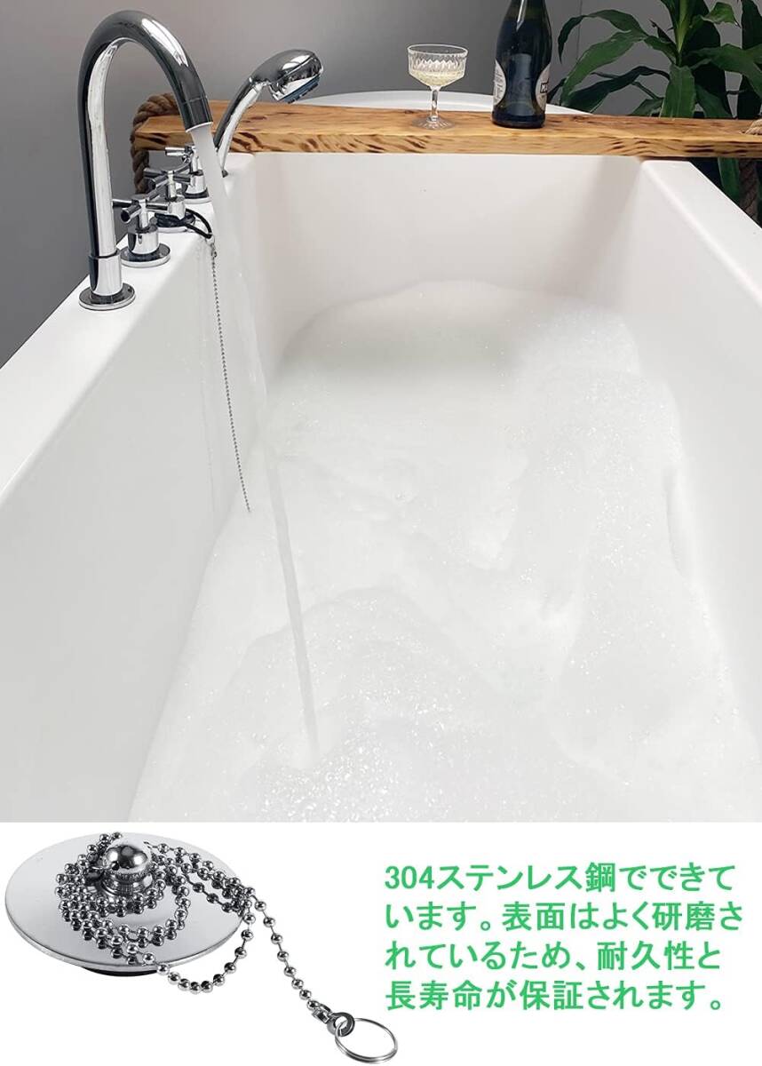 【風呂栓 チェーン材質】: 総長:74 cm、ボールの直径:4.5 mm、チェーンの全長: 67cm、風呂 せん チェーンは錆びません、304ステンレス鋼でできています。
