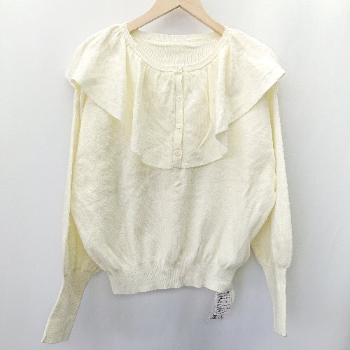 ◇ ◎ ●未使用● LOWRYS FARM ローリーズファーム フリル ガーリー 長袖 ニット サイズF アイボリー系 レディース E