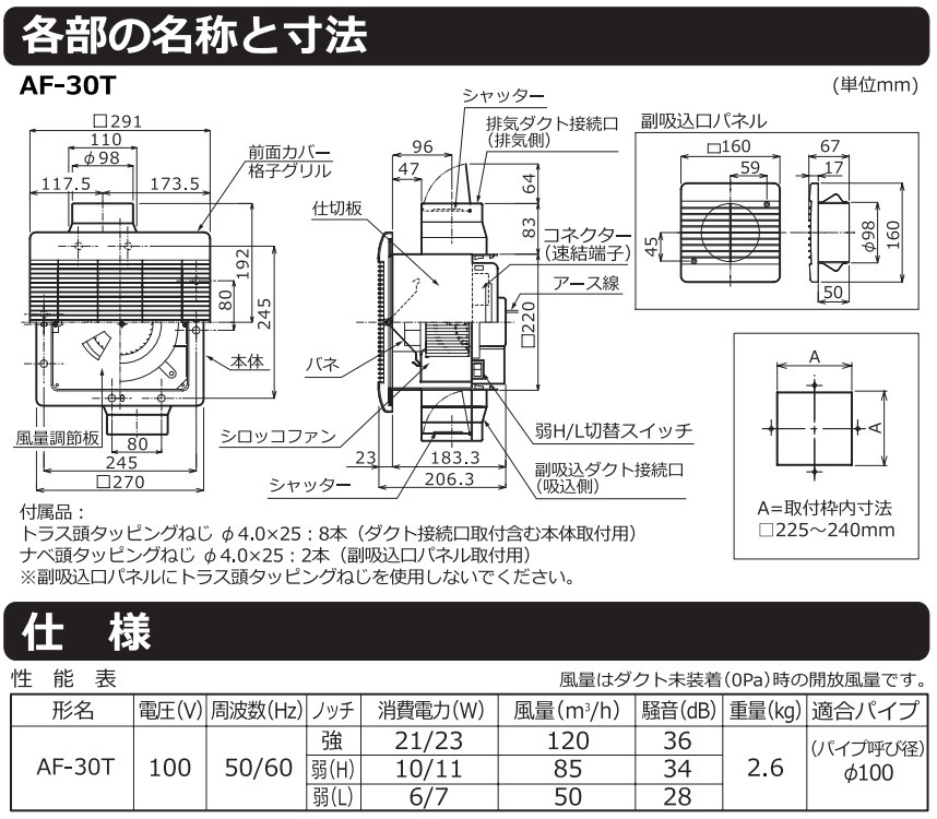 日本電興 浴室換気扇 天井換気扇 強弱切替 AF-30T 埋込225mm/240mm 2室用 ユニットバス トイレ換気扇 ダクト換気扇