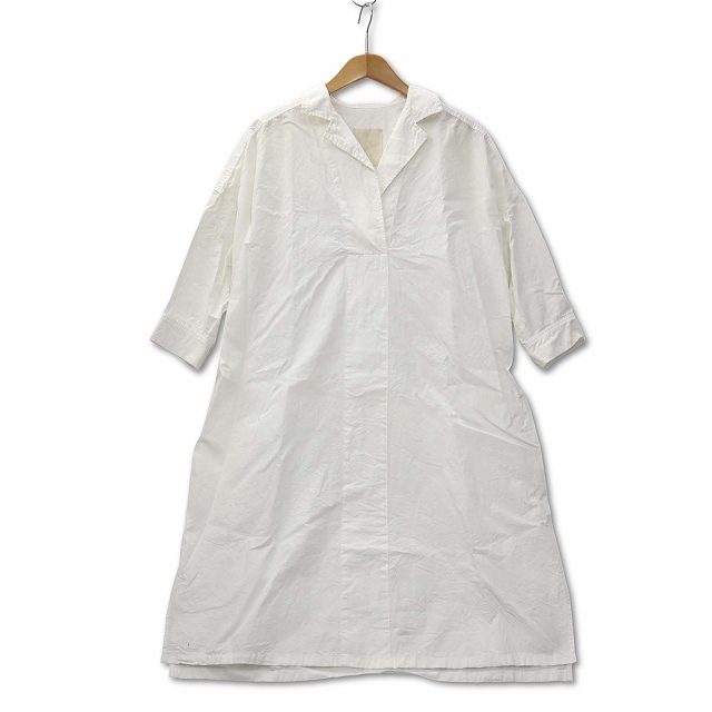 ミューカ MJUKA 麻混 テーラード プルオーバー シャツチュニック 7分袖 白 F レディース