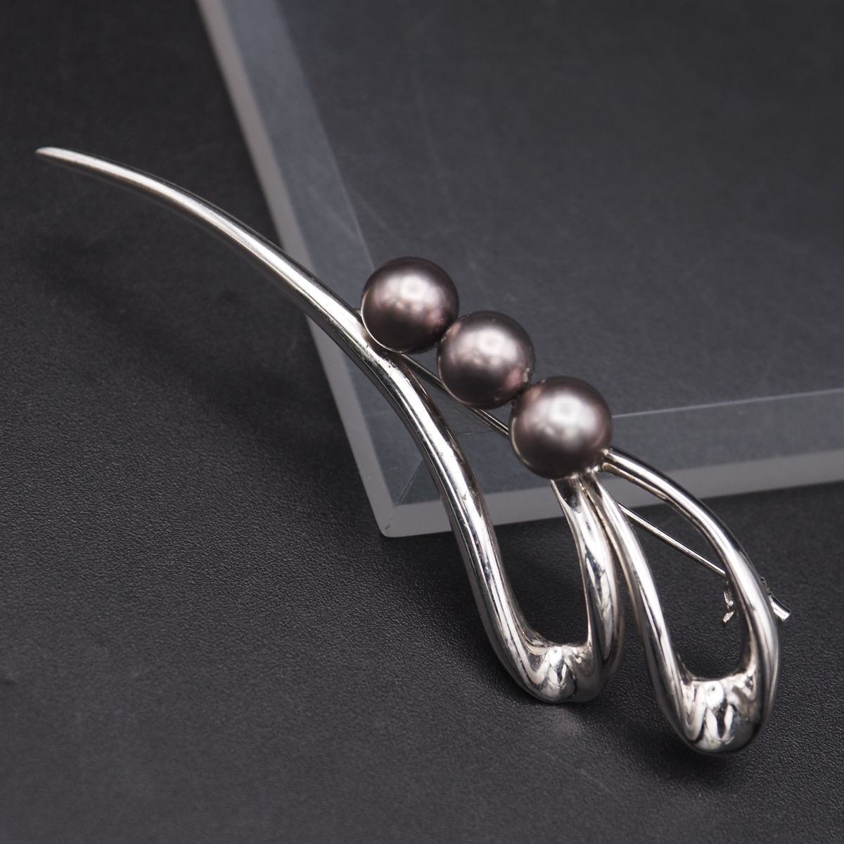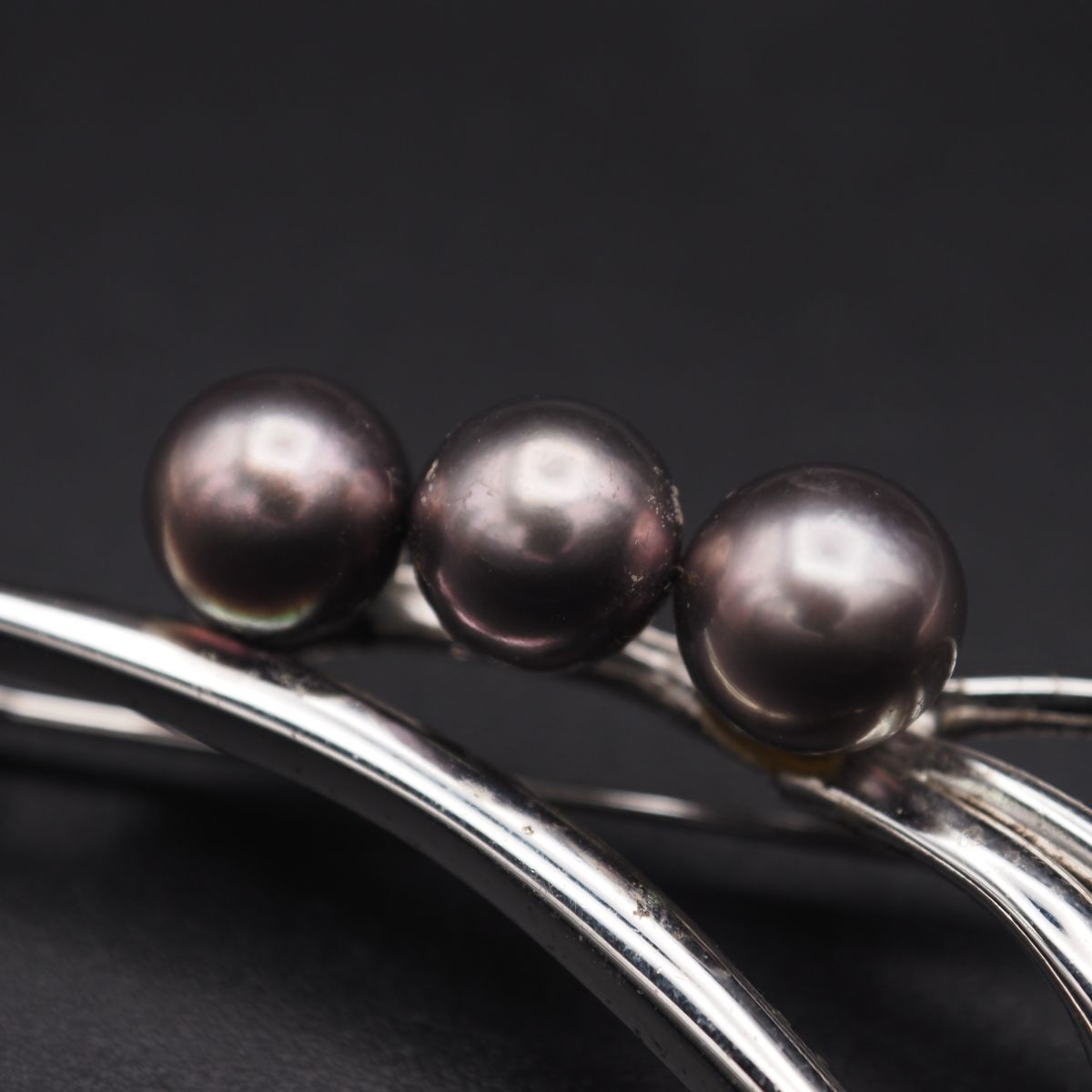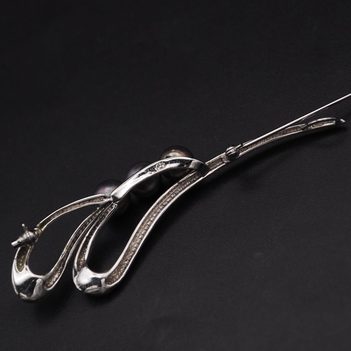 B762 黒蝶真珠 パール SILVER刻印 ブローチ デザイン シルバー コサージュ 6月誕生石