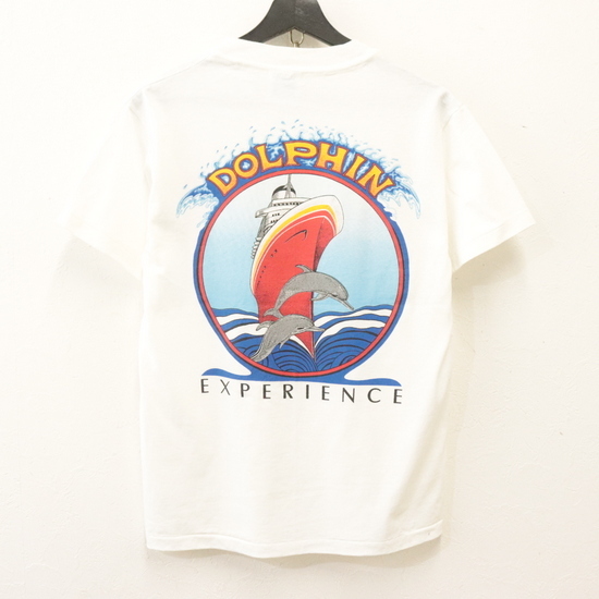 商品名 W600 90sビンテージ Hanes ヘインズ 半袖プリントTシャツ USA製■1990年代製 表記Sサイズ 白 ホワイト アニマル イルカ アメカジ 古着卸