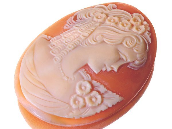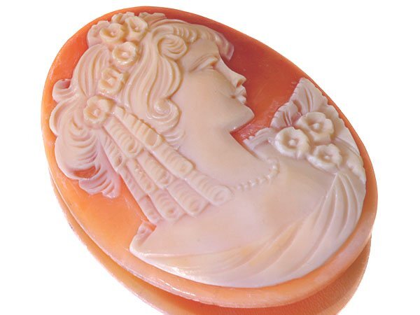 上品な女性の彫刻が素敵な高級シェルカメオルースを激安価格で特別大放出致します!