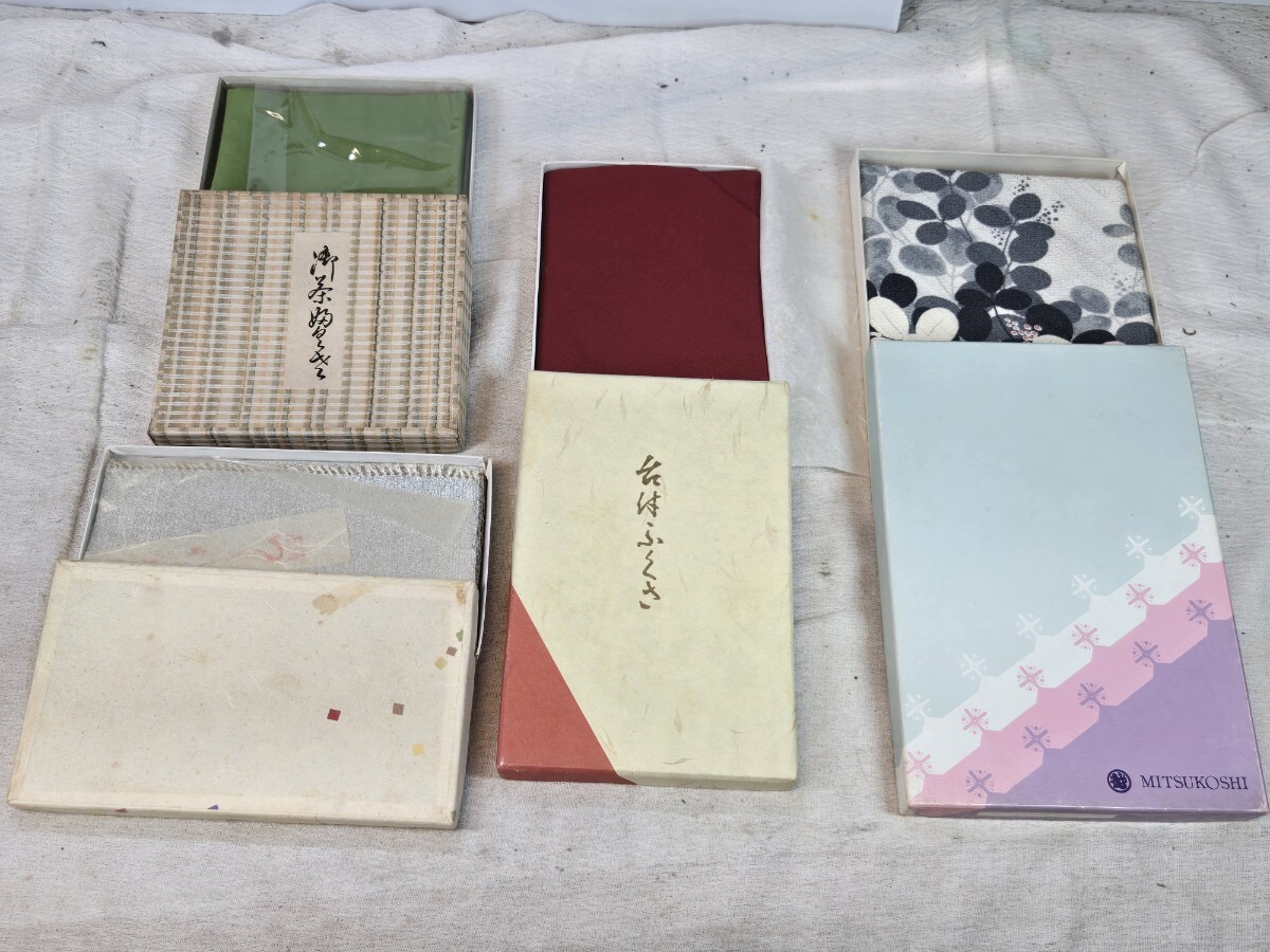 ・風呂敷は箱付きが中心で、未使用に近い折り目の整った状態のものが含まれます(ただし保証はしません)。贈答や保管にも使える汎用性があります。