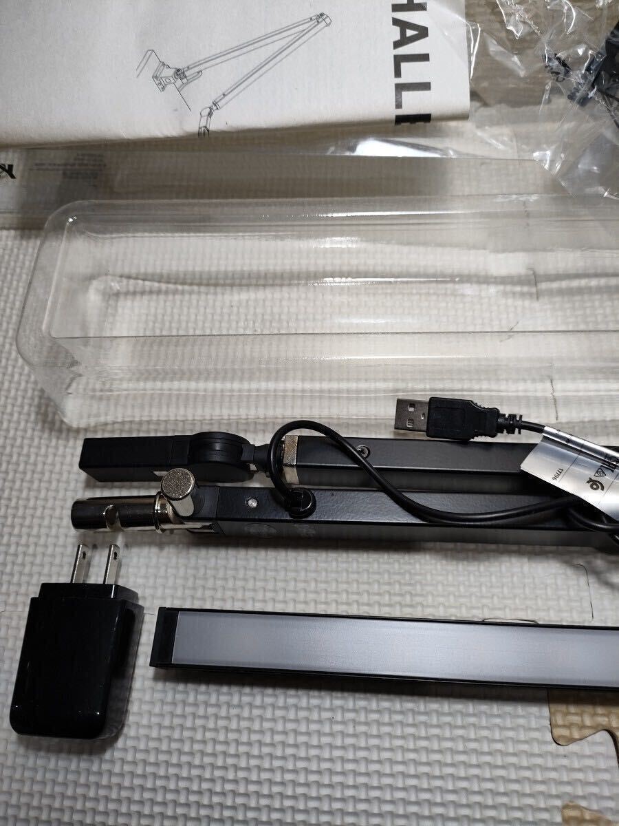 HALLBY ハルビー LED ワークランプ デスクライトです。 調光可能なLEDデスクライトです。 動作確認のみでほぼ未使用品になります。 パッケージにはダメージ有ります。 写真参照下さい。 ほぼ未使用品ですが、自宅保管品(バッケージダメージ有り) につき御理解頂ける方のみ ノークレーム・ノーリターンで御入札をお願いします。 (神経質な方は入札をお控え下さい。)