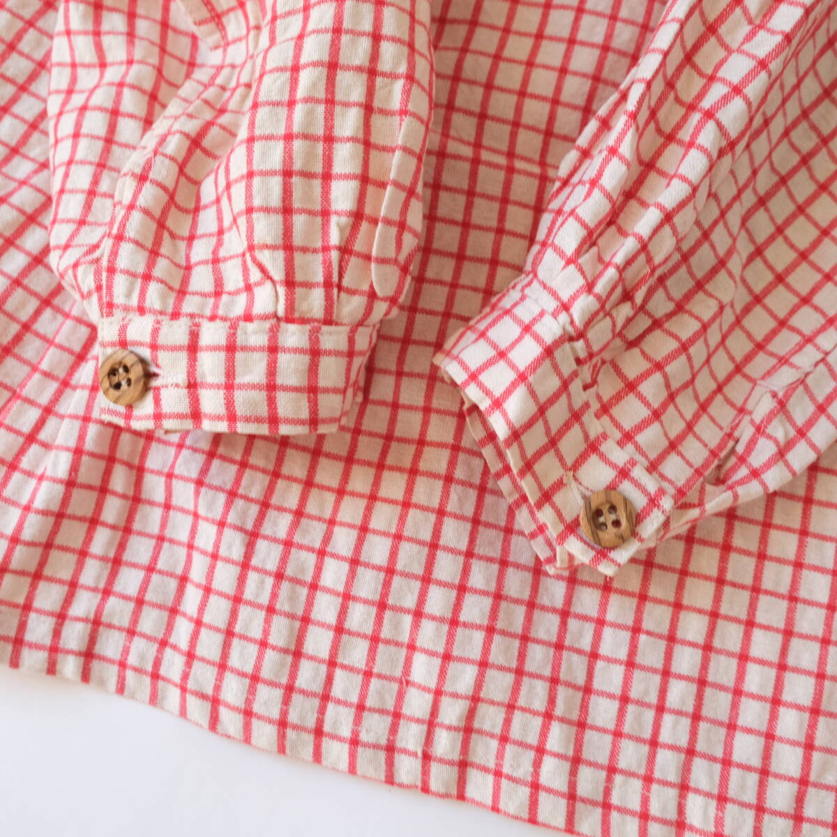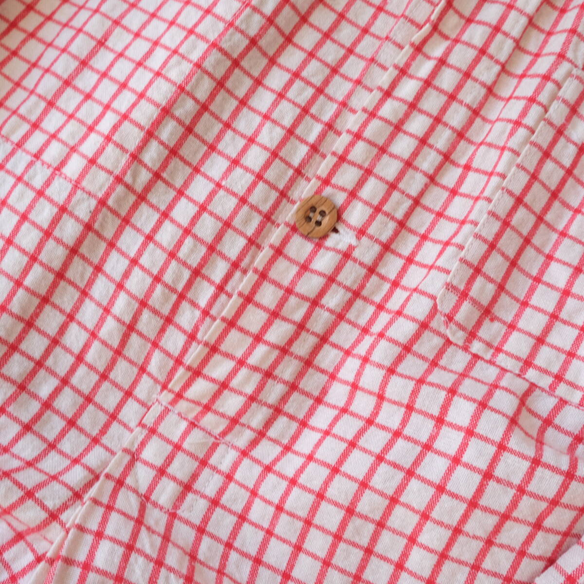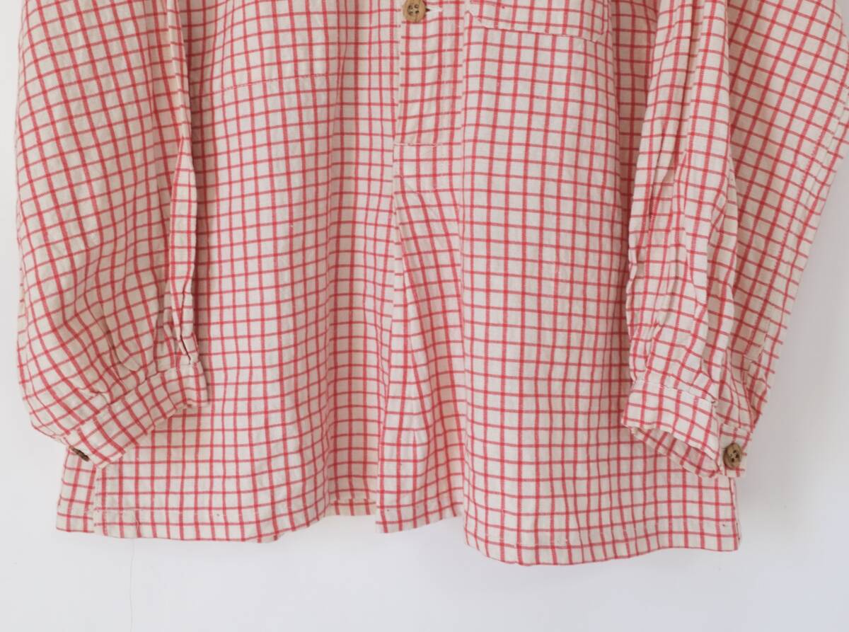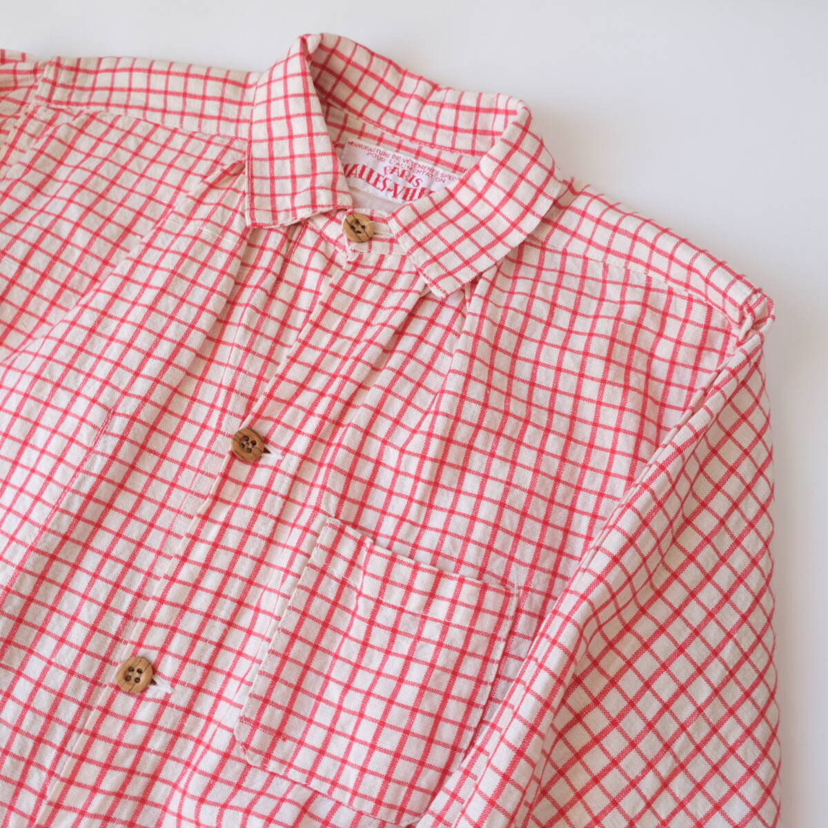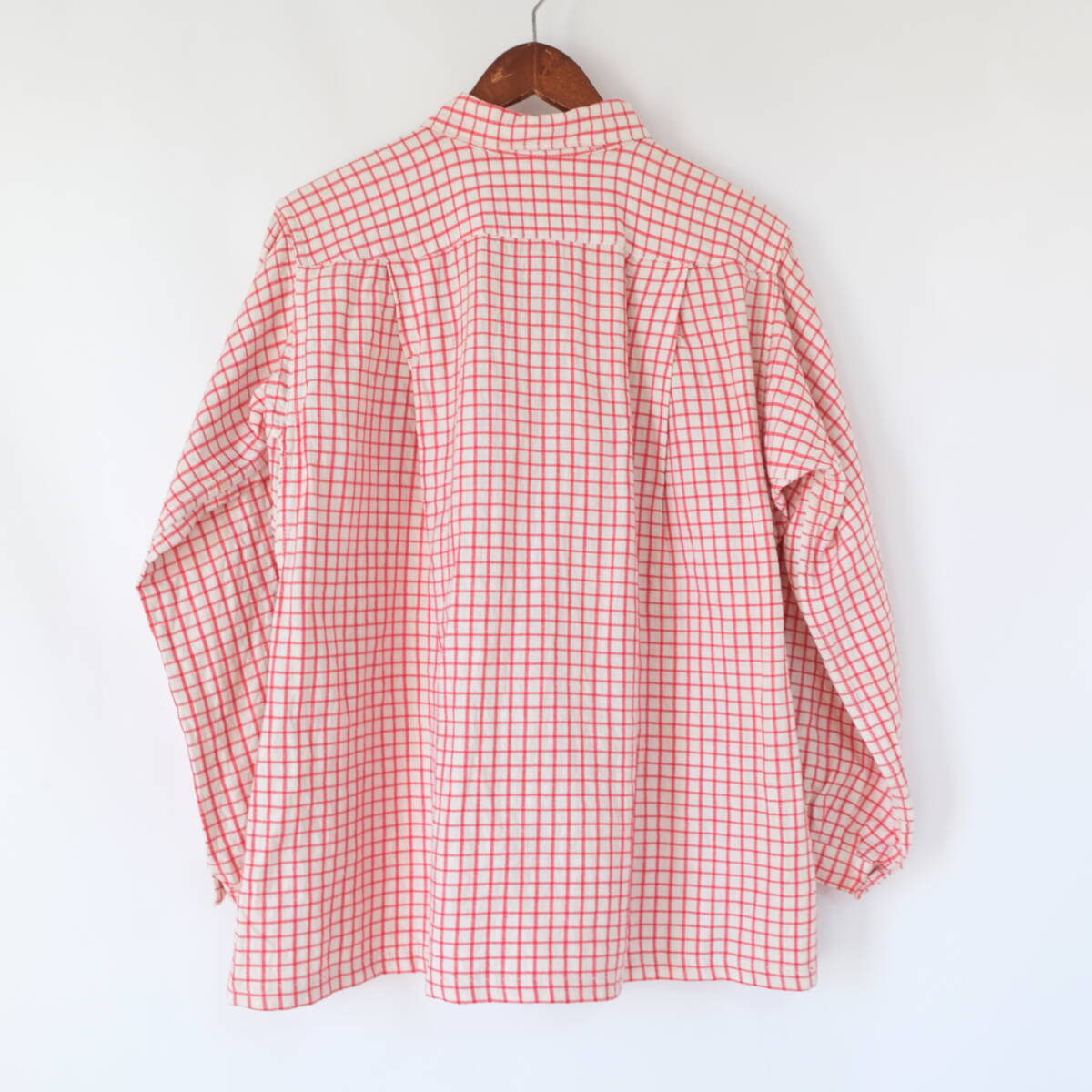 【 フランス ビンテージ 】リネン コットン チェック プルオーバー 長袖シャツ / ホワイト レッド 白赤系 / ヨーロッパ スモック 麻