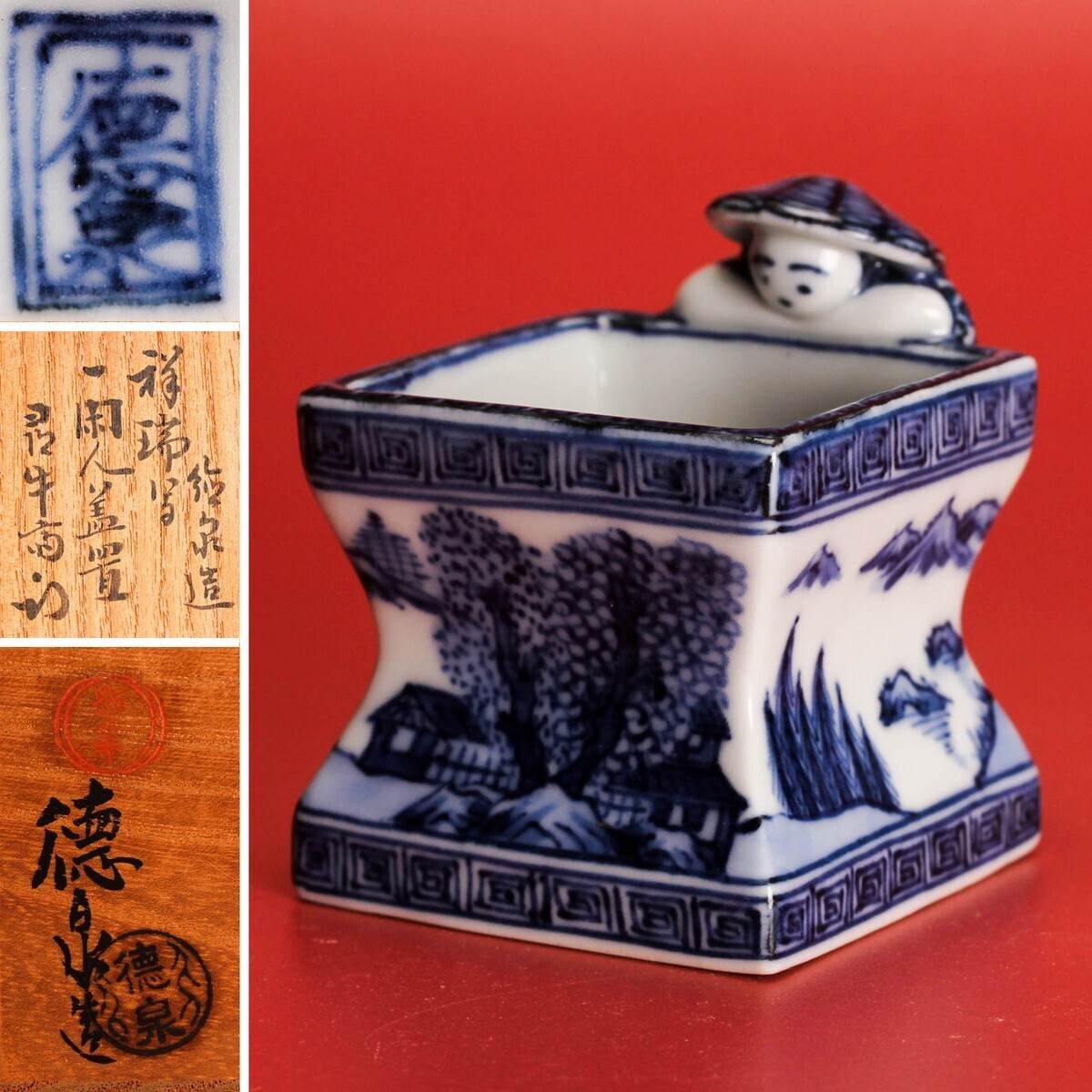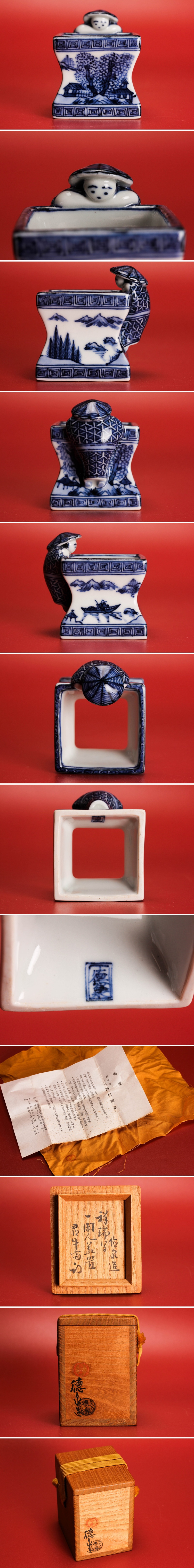 三代 西村徳泉 祥瑞写一閑人蓋置 久田宗也(尋牛斎)書付 共箱 共布 栞 茶道具 本物保証