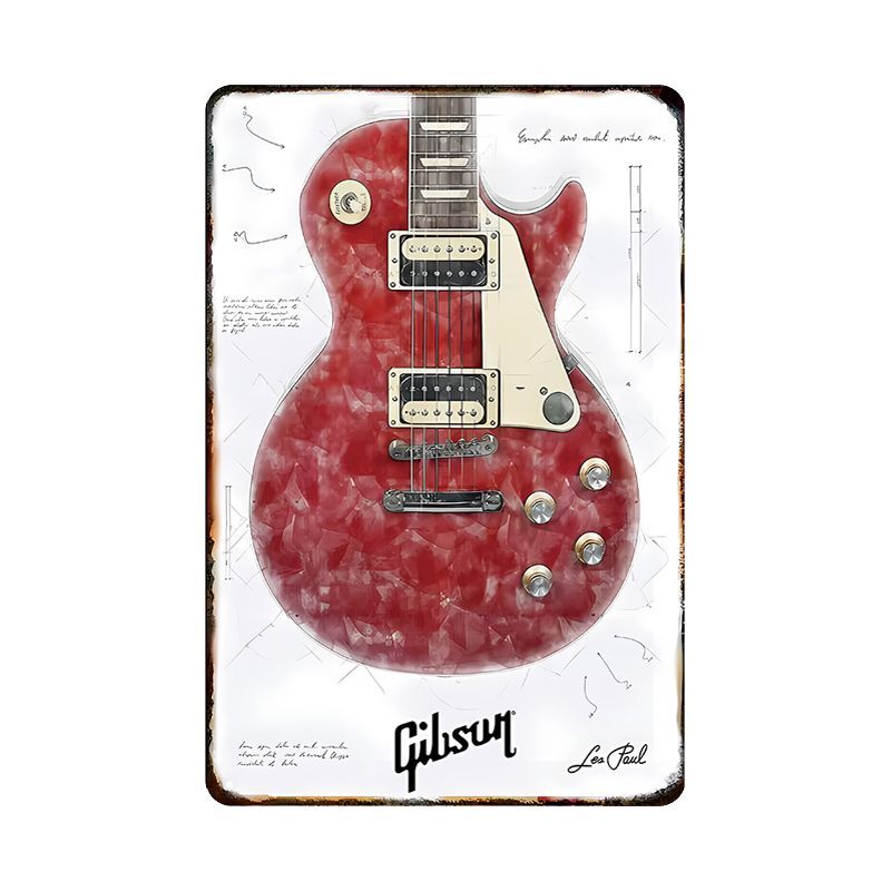 赤いGibson Les Paulを描いたスタイリッシュなブリキ看板。
