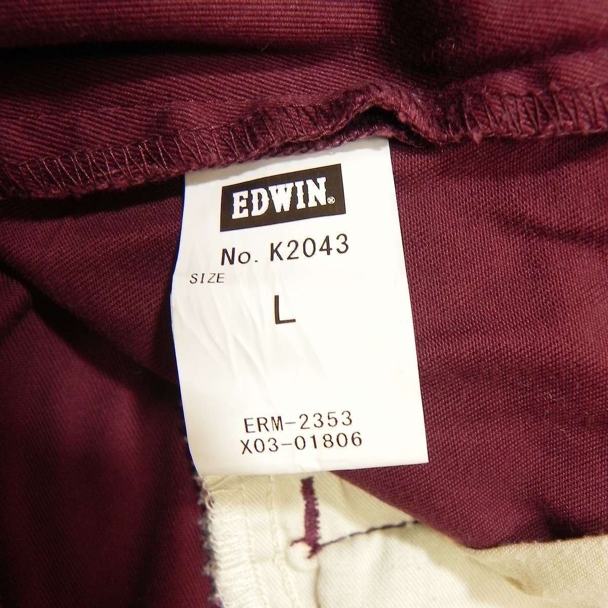 )621★ EDWIN エドウィン K2043 サイドライン パンツ L エンジ系 綿100 古着 即決 ★