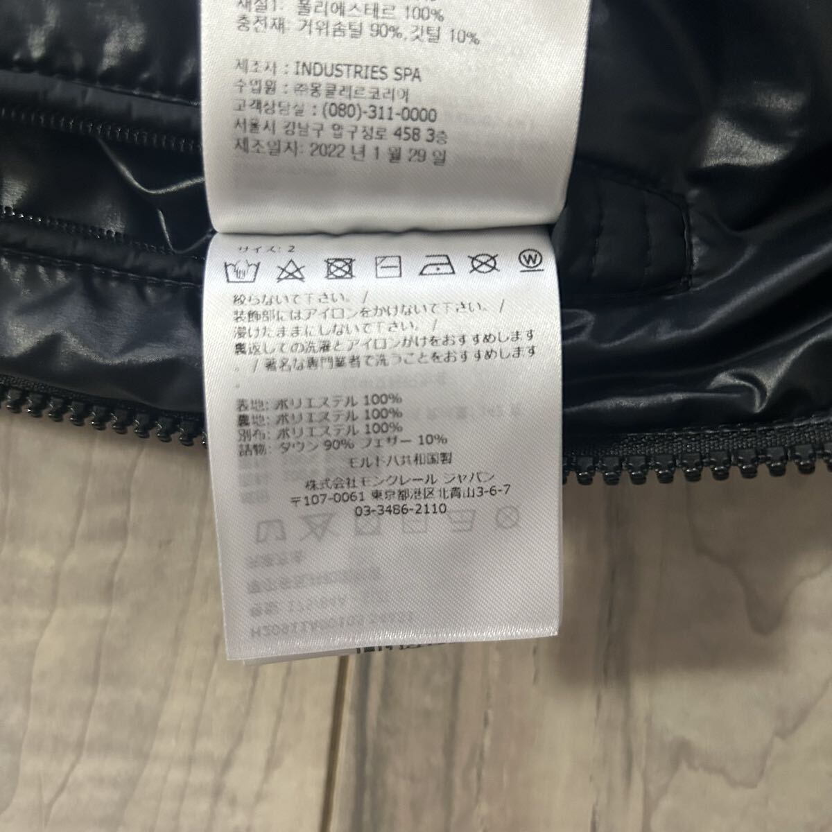 年式も新しいため、アニメタグ、モンクレールタグ、製品タグも非常に綺麗です。