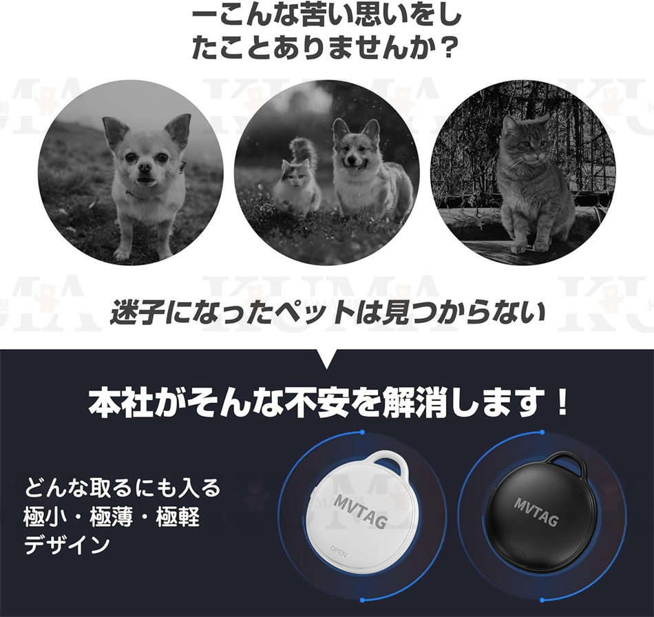 多機能トラッカーは、あらゆるものを追跡するのに役立つ。鍵やリュック、ペットなど、あらゆるものに取り付けることができる,スマホの無料アプリを使って見つけることができる,世界中で利用でき、もはや失われたペットなどを心配する必要はありません!<br>