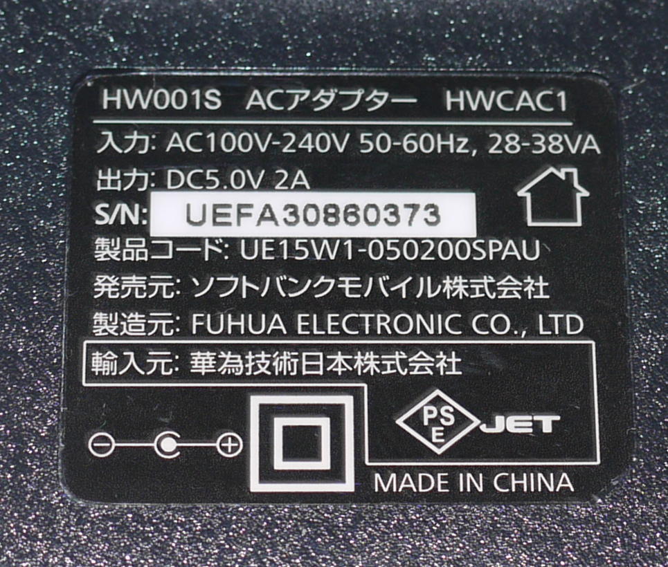 ソフトバンク フォトパネルACアダプタ HWCAC1/ UE15W1-050200SPAU 5V 2A 動作確認済