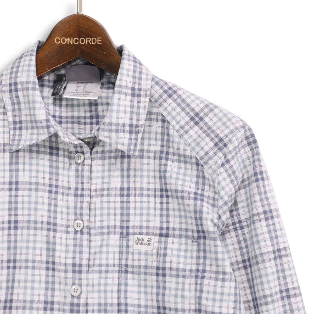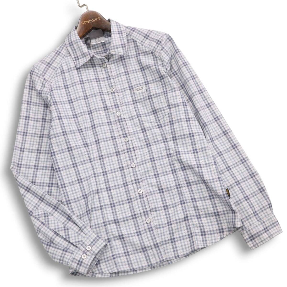 【美品】Jack Wolfskin ジャックウルフスキン 通年★ ポリ100% 長袖 チェック シャツ Sz.S レディース アウトドア