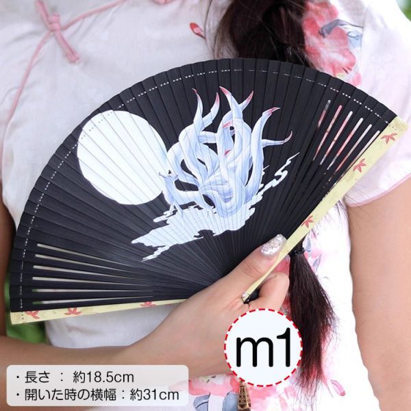 (m1番)扇子 おしゃれ イラスト 狐 きつね デザイン おすすめ メンズ レディース 竹扇子 涼しい 竹扇子 女性 総竹扇子 和風 高級 袋付き