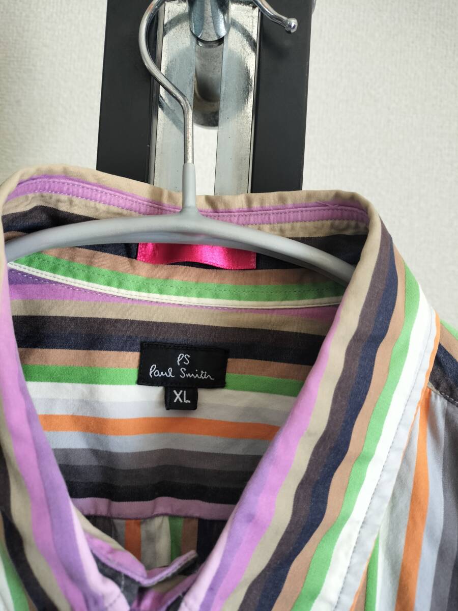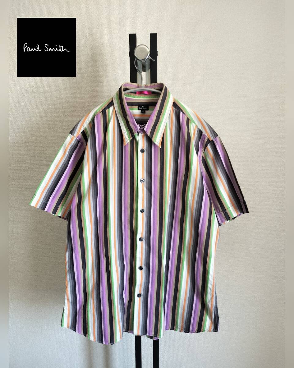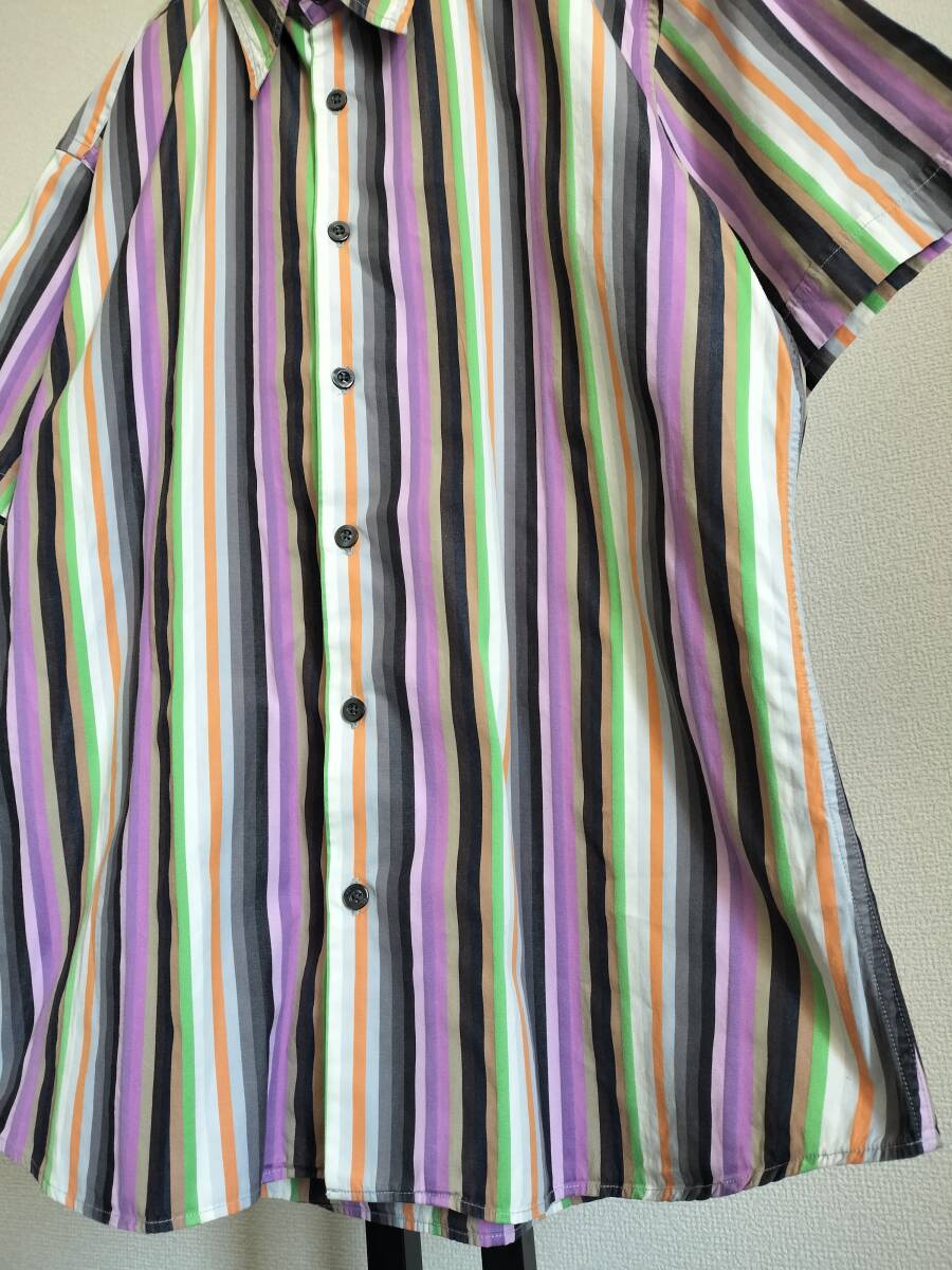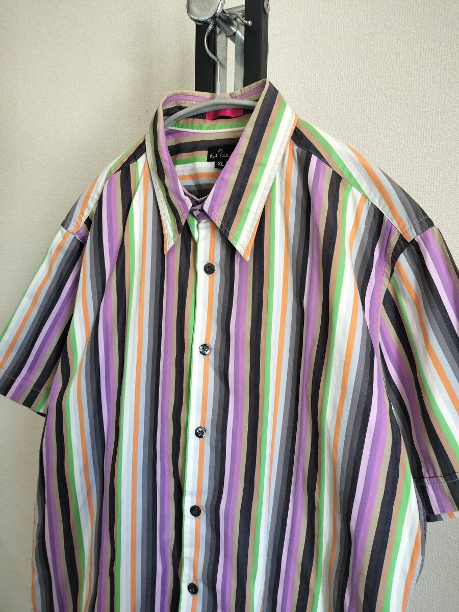 Paul Smith/ポールスミス/マルチストライプ半袖シャツ/PSロゴボタン/日本製/希少サイズXL