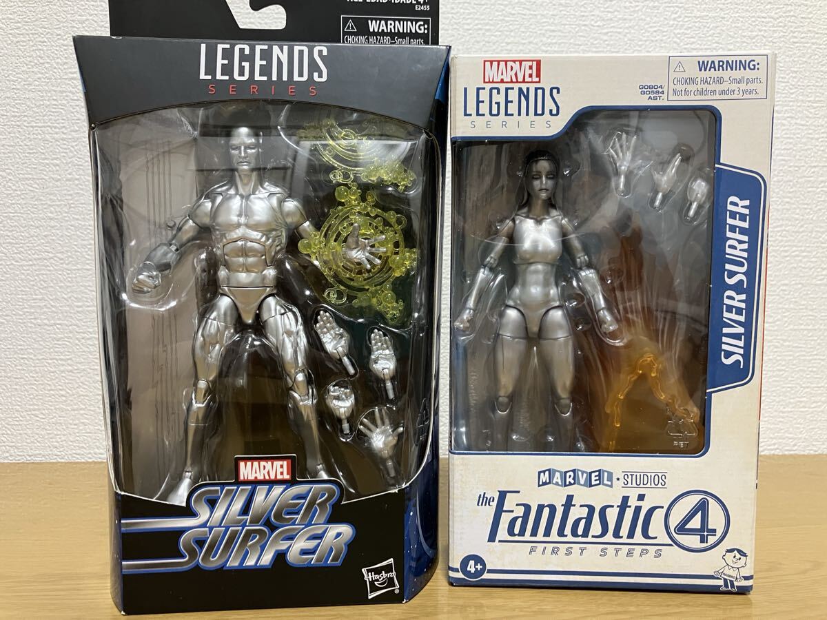 ファンタスティック4 ファーストステップの映画に登場する女性版のシルバーサーファーと以前の平成版のファンタスティックフォーの映画に登場した男性版のオリジナル版のシルバーサーファーのフィギュア2体セットの出品です。