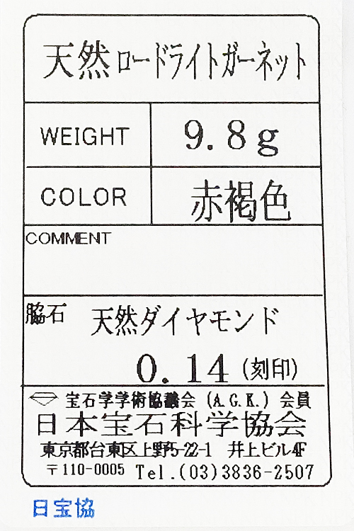 | ■ロードライトガーネット | 色 : 奥底にレッドを感じる濃く深い褐色の色合い クラリティ : 肉眼では内包物の確認が困難な程度 ※肉眼では確認が難しい点のような小傷があります |