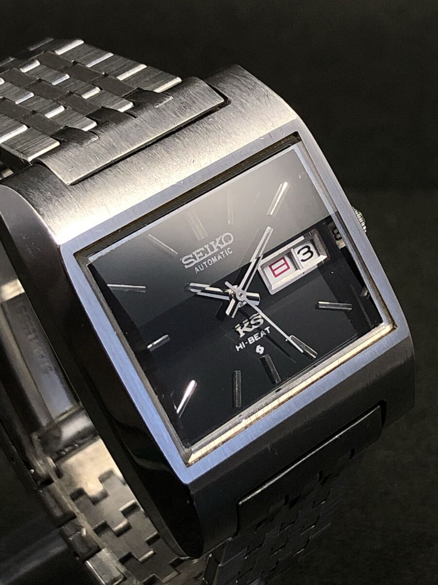 希少モデルで、3時位置にはカレンダーが配備。12時位置には『SEIKO』、6時位置には『KS』ロゴが誇らしげに植字されています。