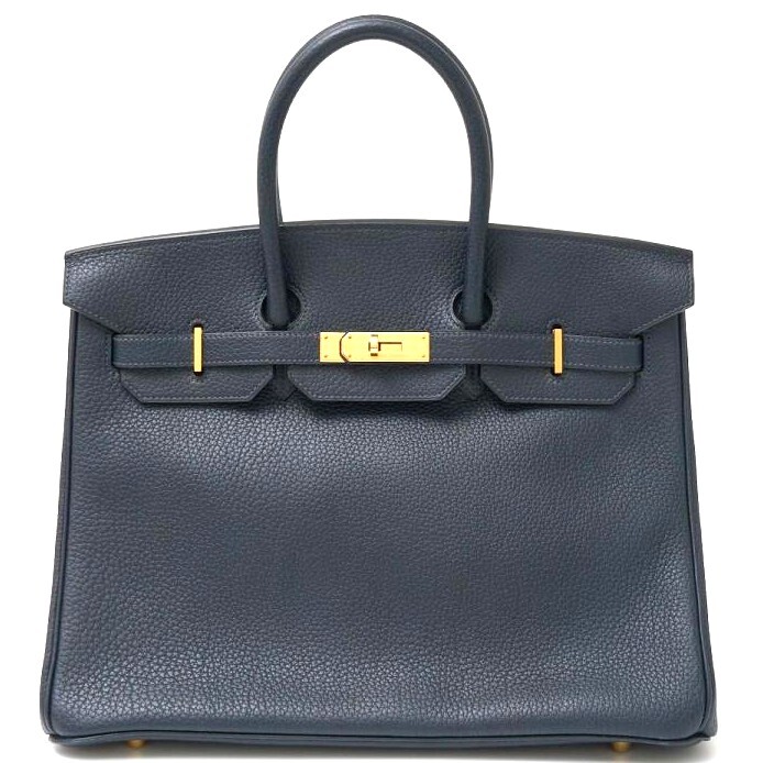HERMES エルメス バーキン 35 ハンドバッグ トートバッグ フィヨルド インディゴ(ダークネイビー)×ゴールド □C刻印(1999年頃製造)