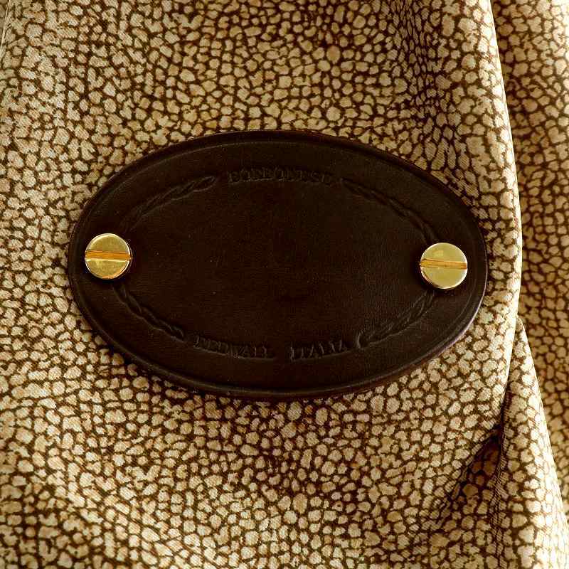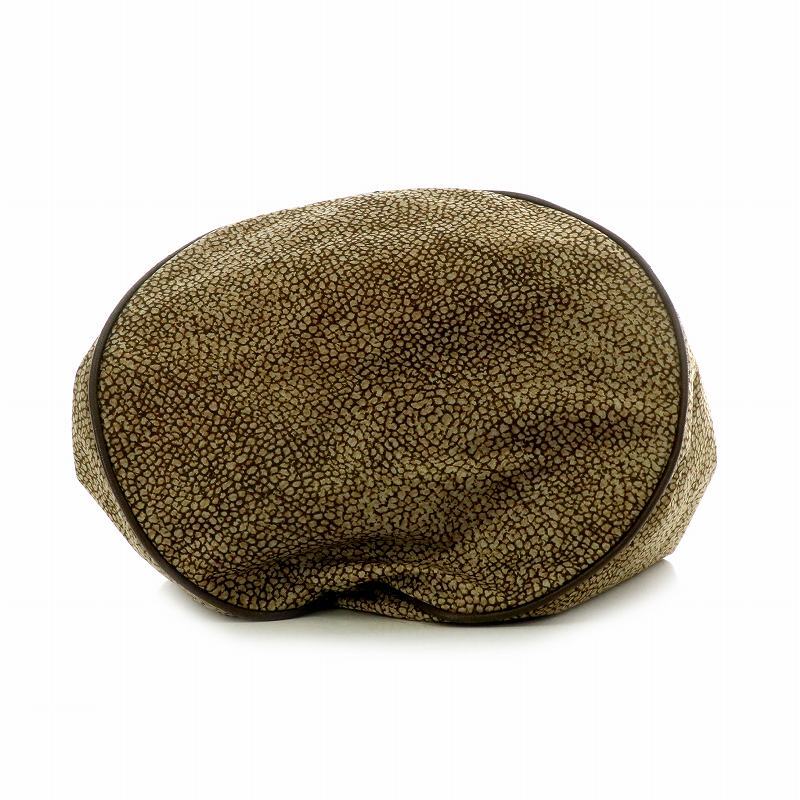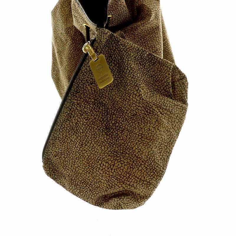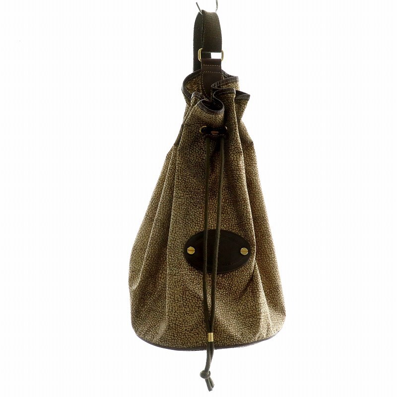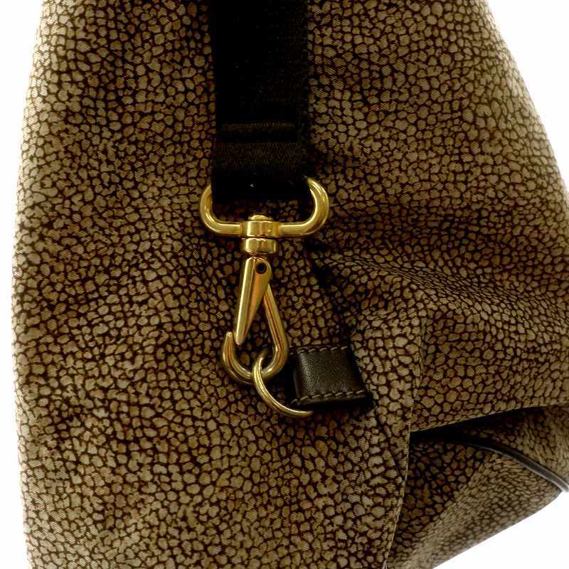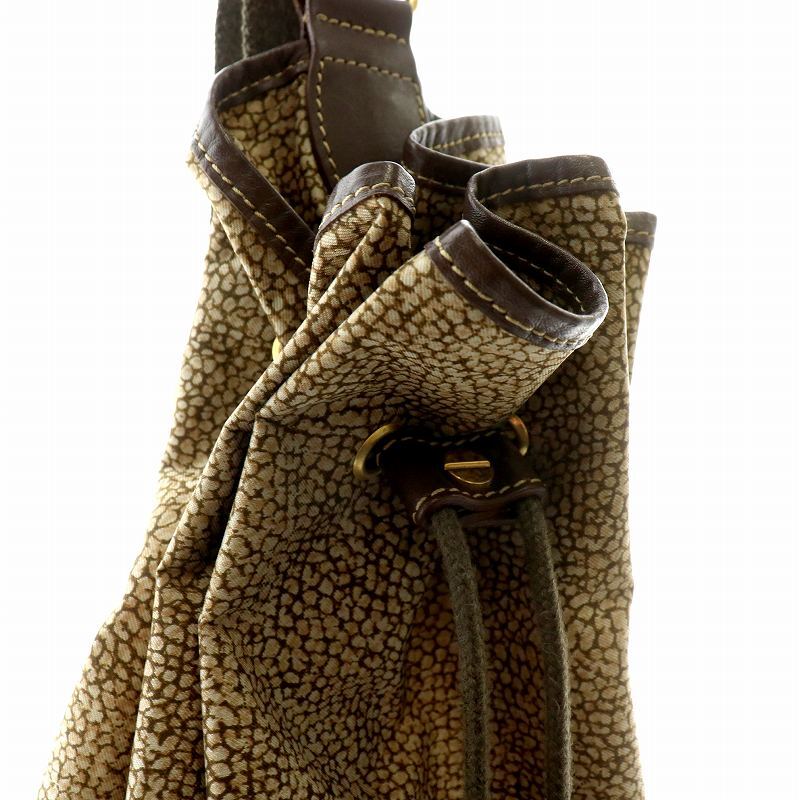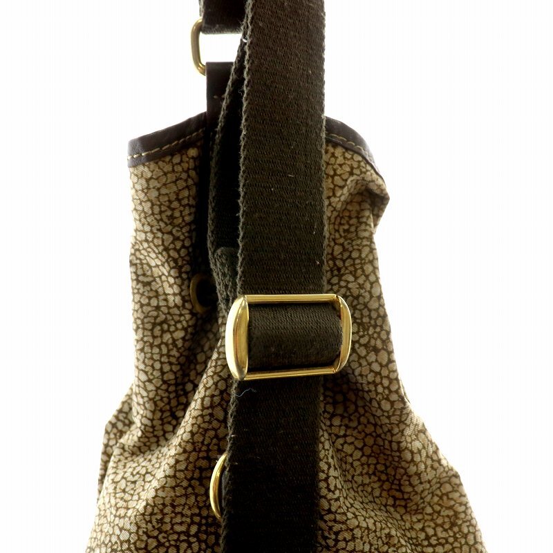 ボルボネーゼ BORBONESE ショルダーバッグ 巾着バッグ ワンショルダー 総柄 ナイロン レザー 皮革 ロゴ メタルパーツ ベージュ 茶