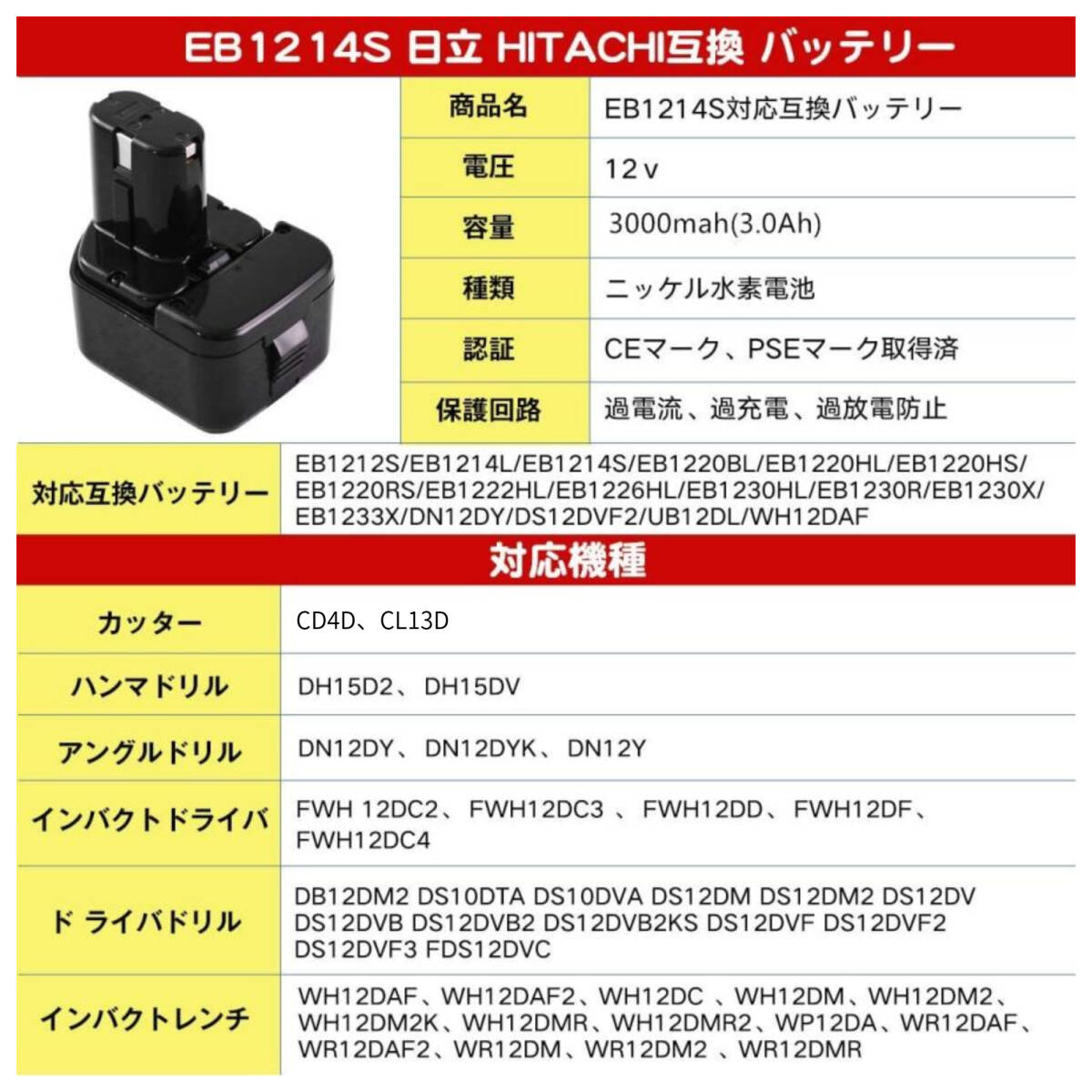 (A) 日立 EB1214 互換バッテリー 1個 Hitachi 12V 3000mAh