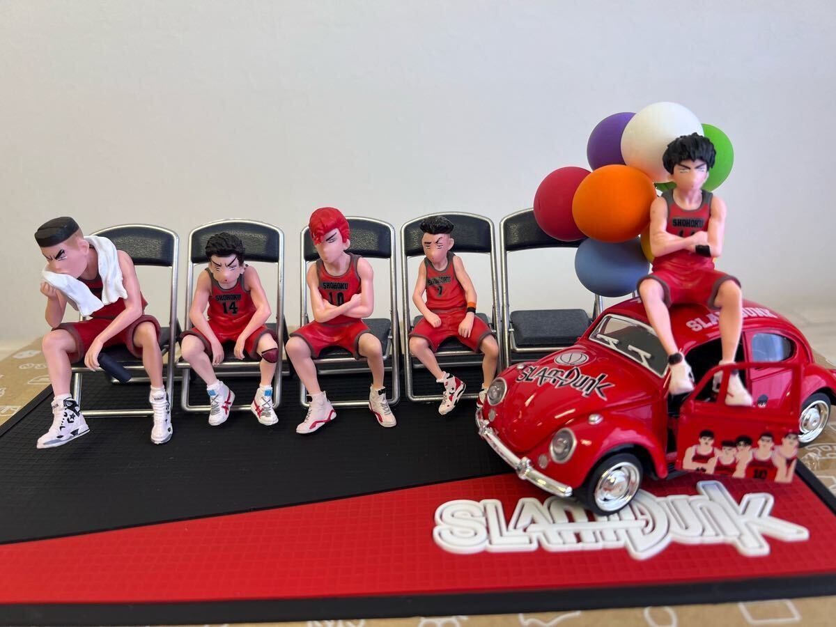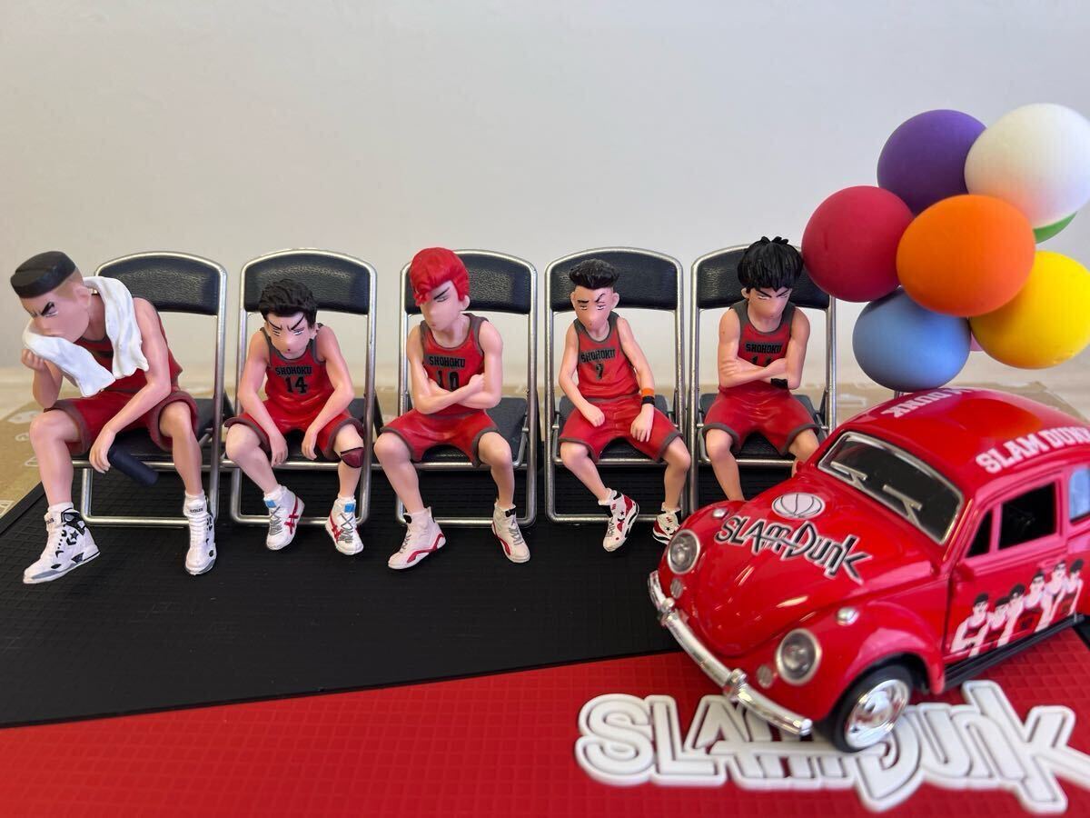 スラムダンクのキャラクター5体とミニカー、カラフルなバルーンがセットになった大満足なフィギュアコレクション フルコンプ
