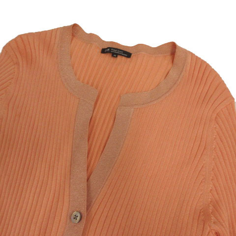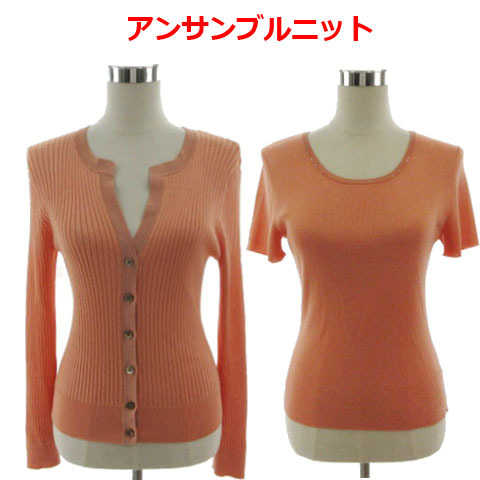 23区 オンワード樫山 アンサンブルニット カーディガン リブ 長袖 ニット ビーズ 半袖 オレンジ系 ピンクオレンジ 40 レディース